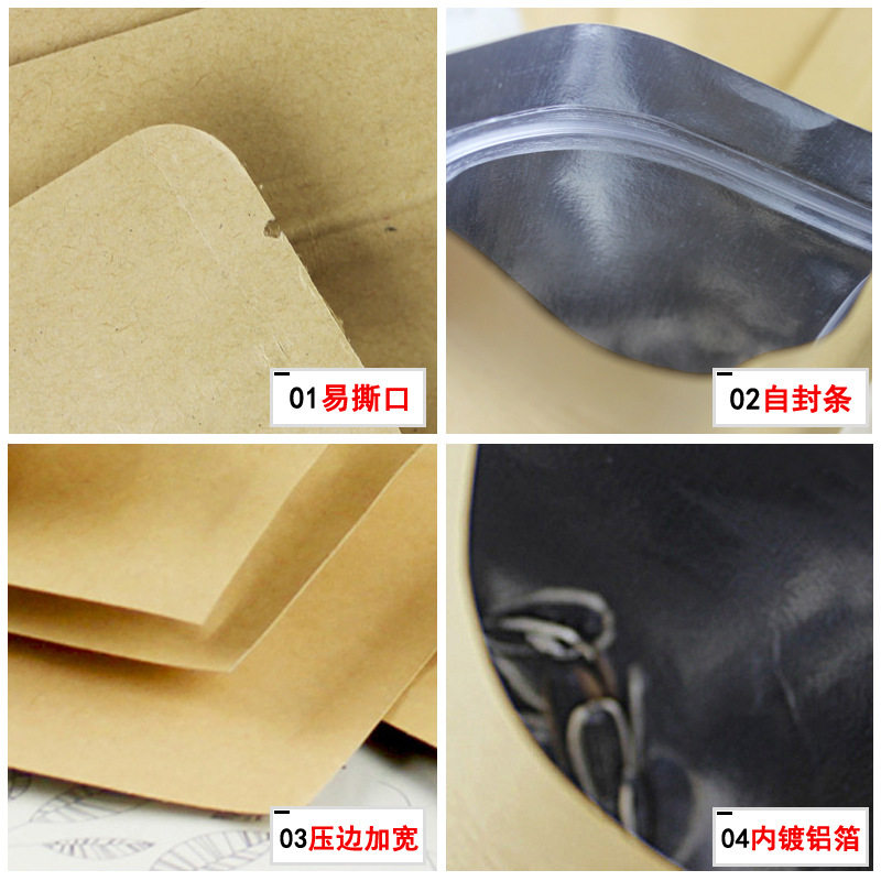 现货镀铝牛皮纸小包装袋平底牛皮纸袋食品自封袋坚果包装袋铝膜袋