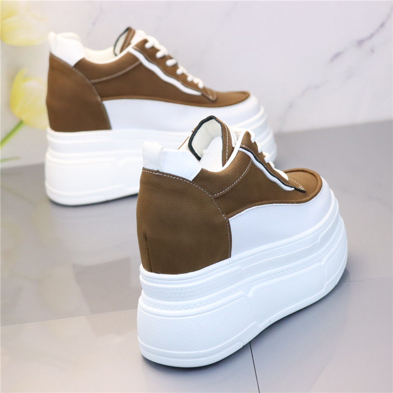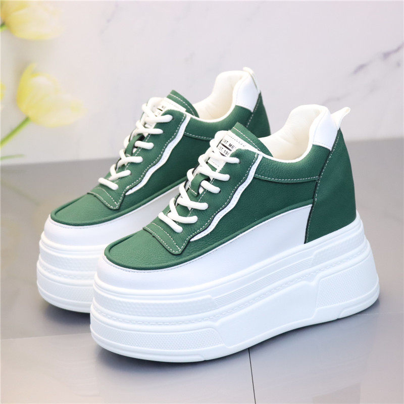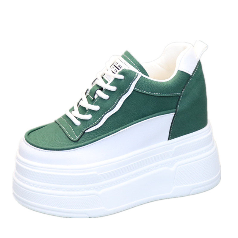 真皮厚底小白鞋女2024新款休闲运动鞋小个子女鞋显瘦内增高12厘米