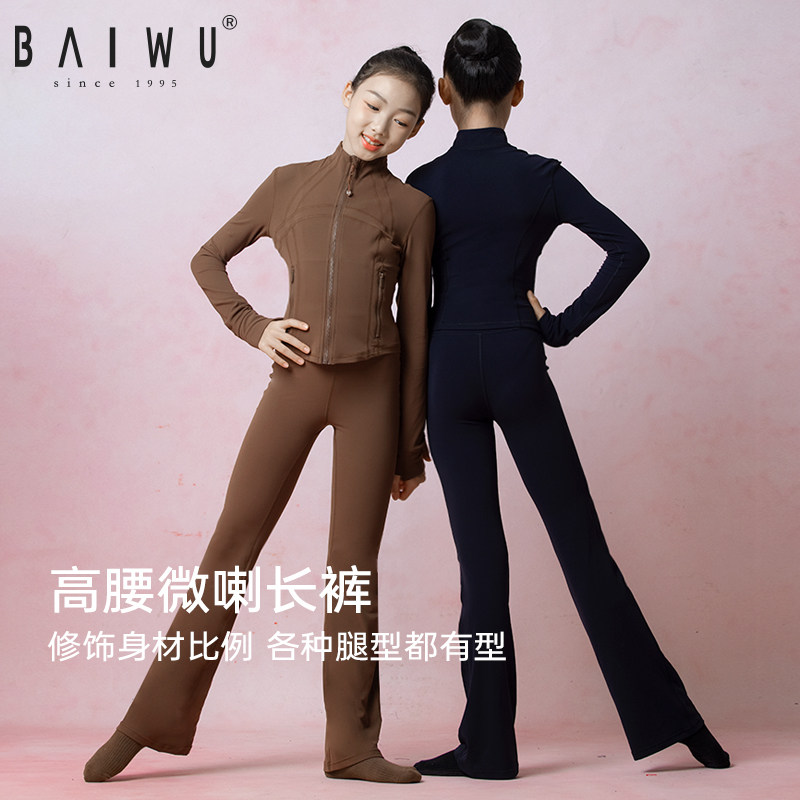 柏屋儿童舞蹈服套装女童加绒保暖练功服运动条纹舞蹈上衣舞蹈裤