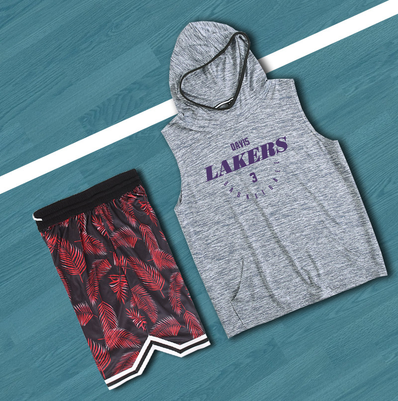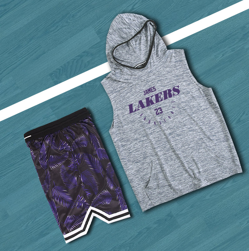 新湖人队23号詹姆斯球衣戴维斯连帽篮球训练服套装篮球服定制订做