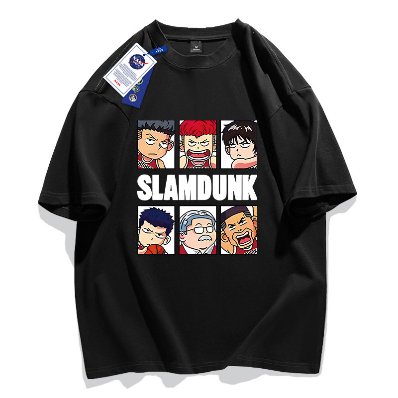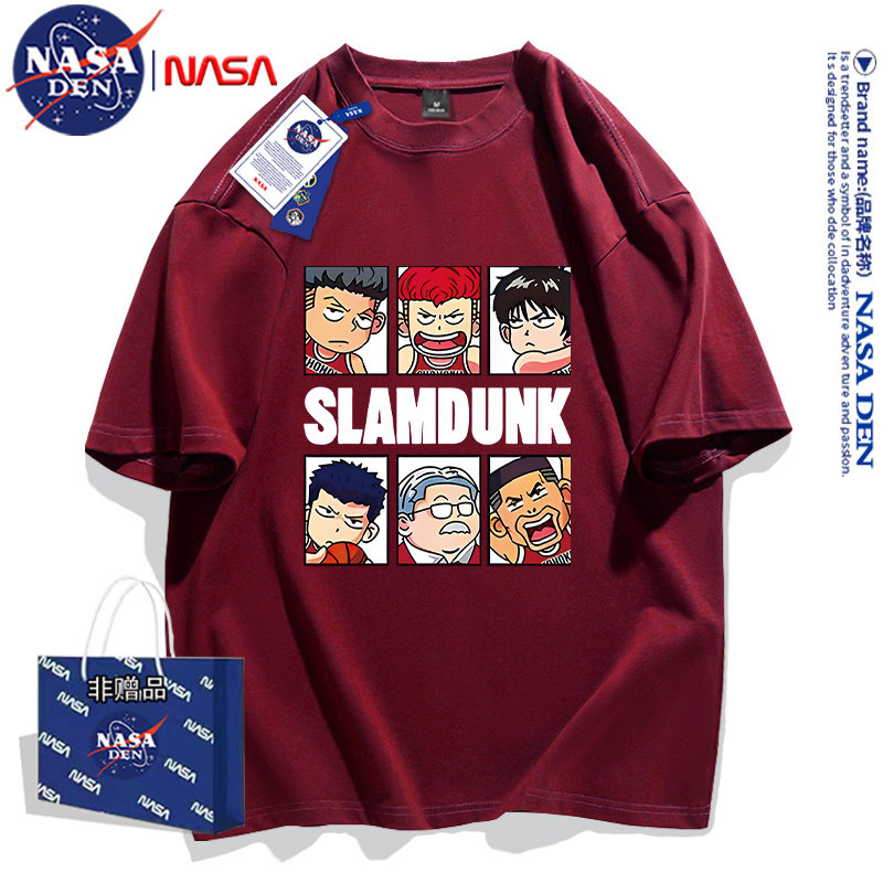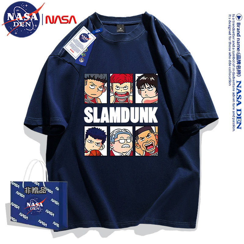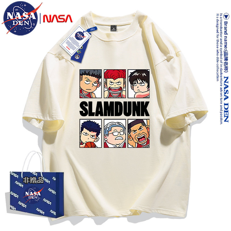 NASA联名嘻哈美式印花重磅纯棉五分袖男女款oversize宽松T恤短袖