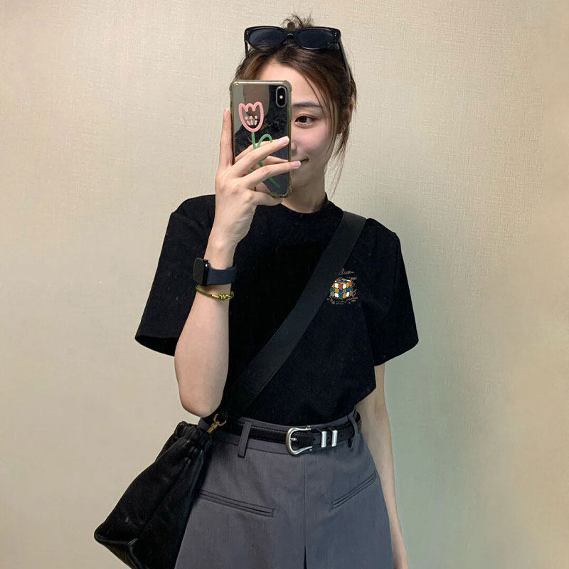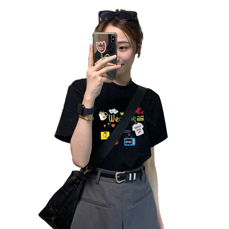 微胖正肩t恤女2026年新款短袖夏季女装时髦时尚洋气宽松纯欲上衣