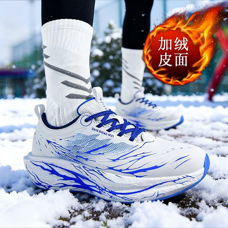 赤兔9Pro跑步鞋冬季加绒皮面跑鞋超轻专业碳板男童运动二棉鞋加绒