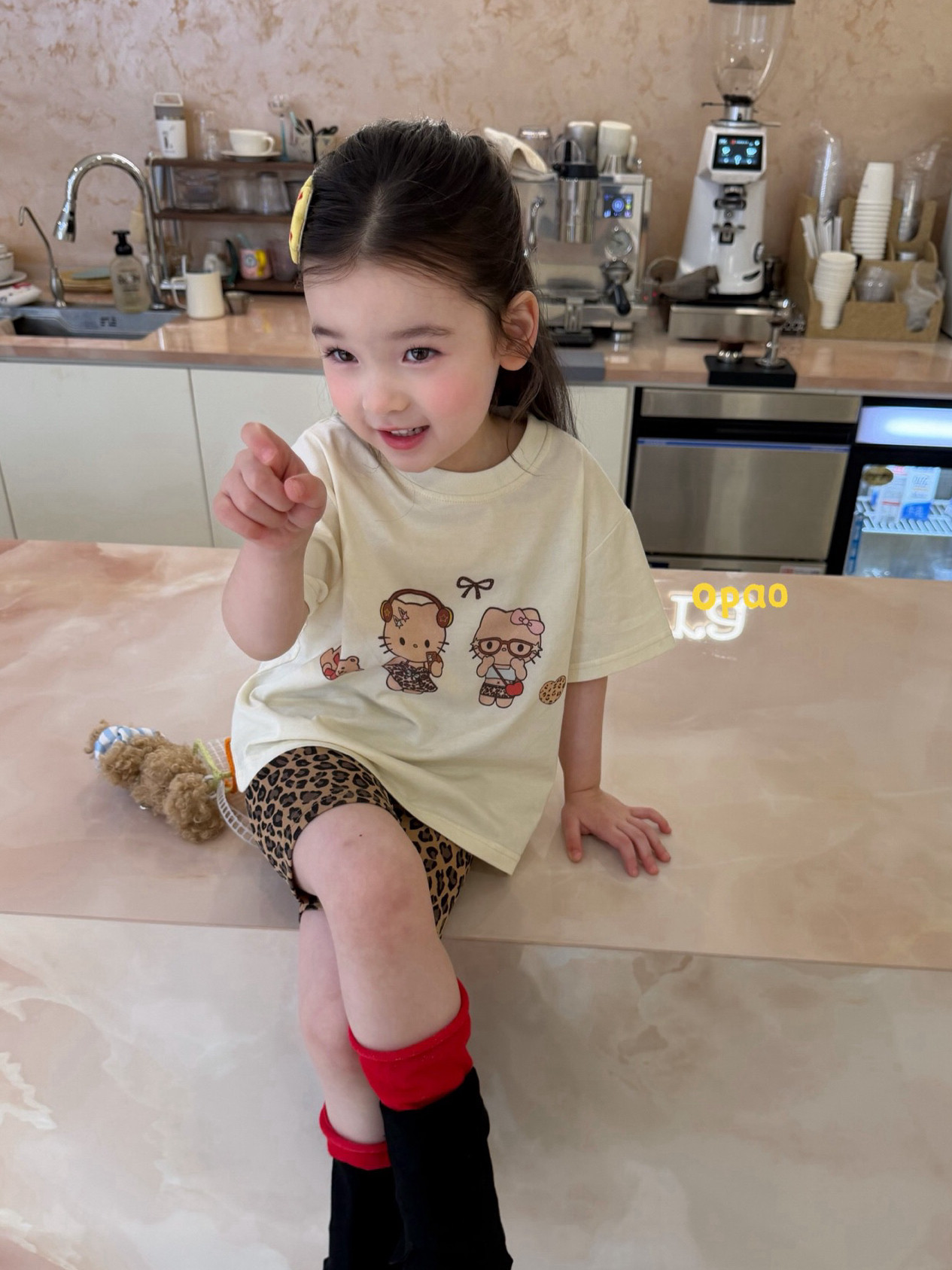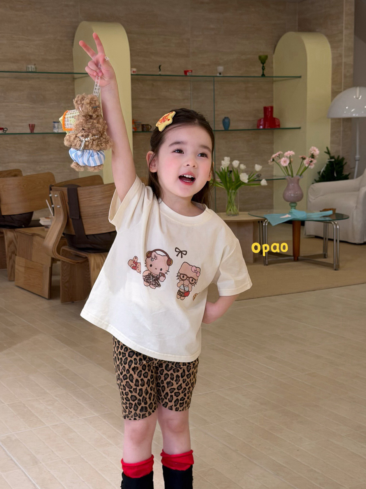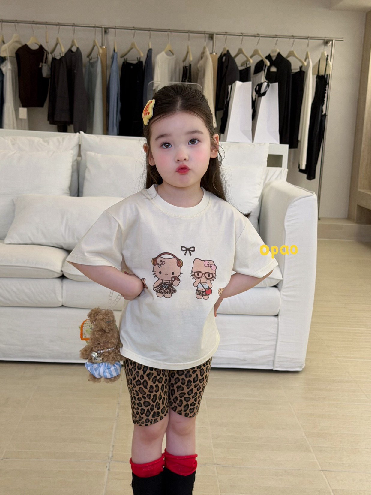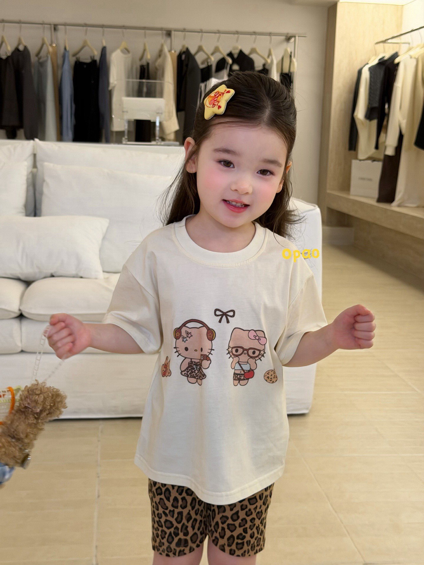 凡妈童装2026夏新款女童小童韩版豹纹打底裤KT猫短袖宽松T恤套装