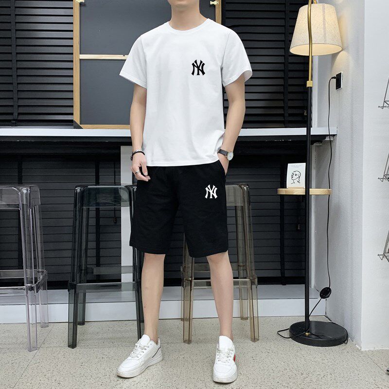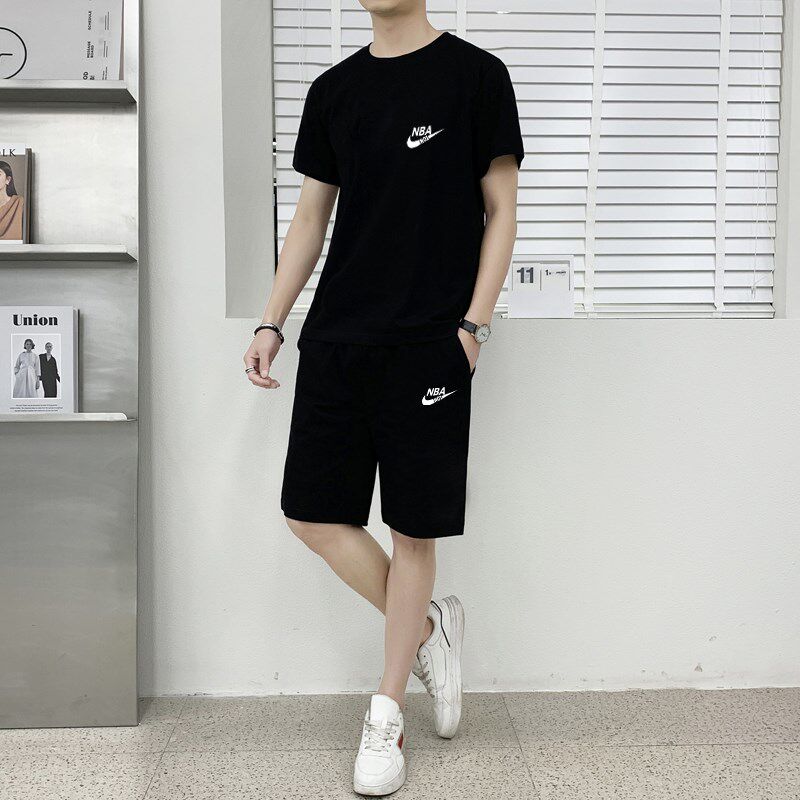 男士休闲套装夏季纯棉短袖t短裤两件套夏天跑步运动衣服一套搭配