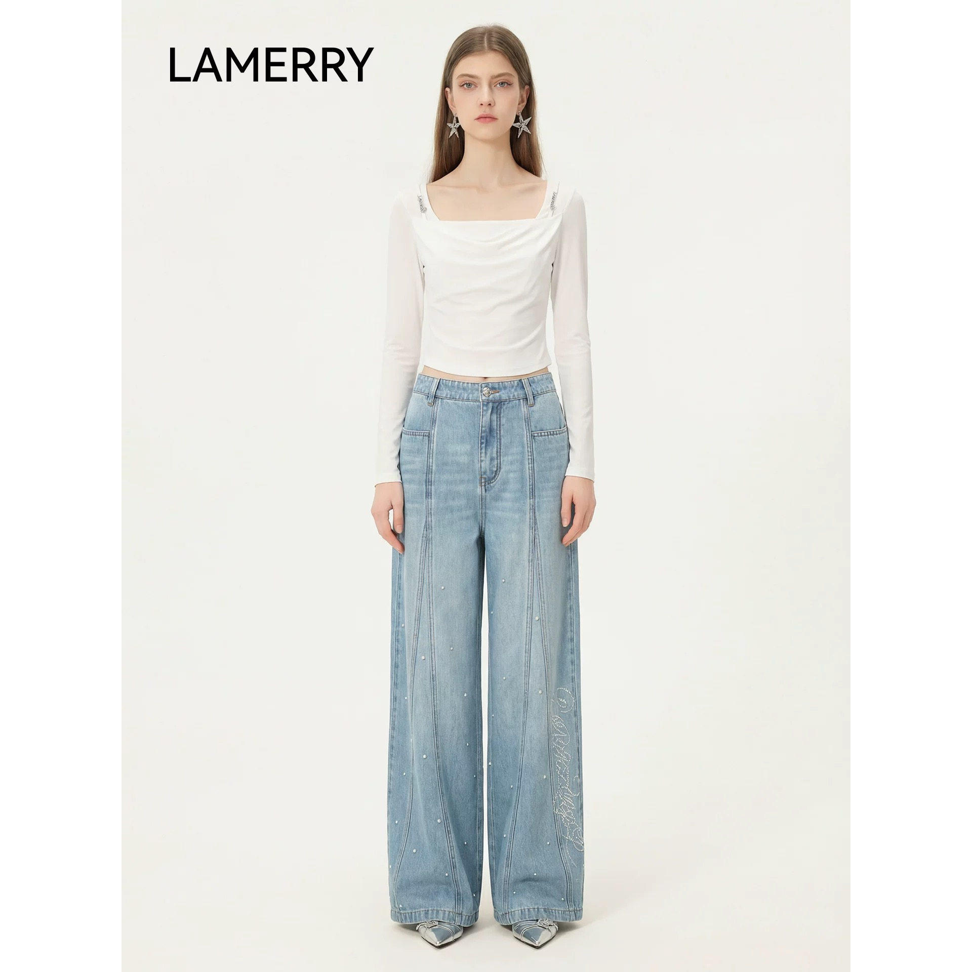 LAMERRY | 朗美睿 女装 正品折扣 26春装 分割烫钻 牛仔裤