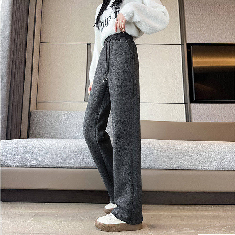 加绒裤子女冬季加厚羊羔绒直筒裤2025新款秋冬加长高个子外穿棉裤