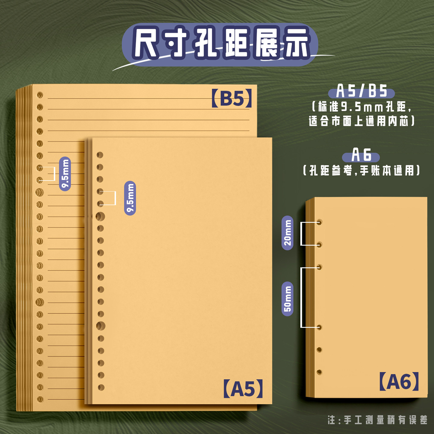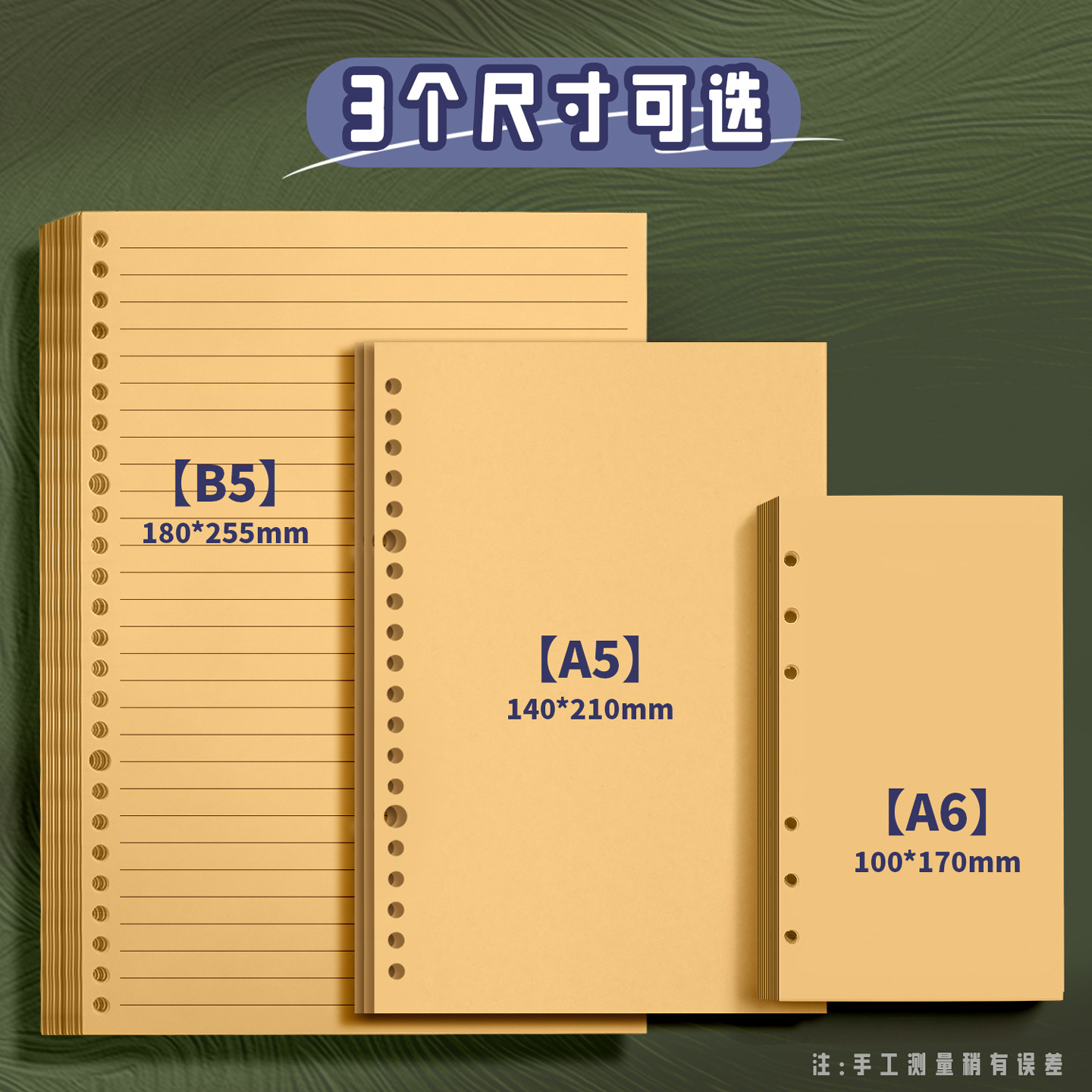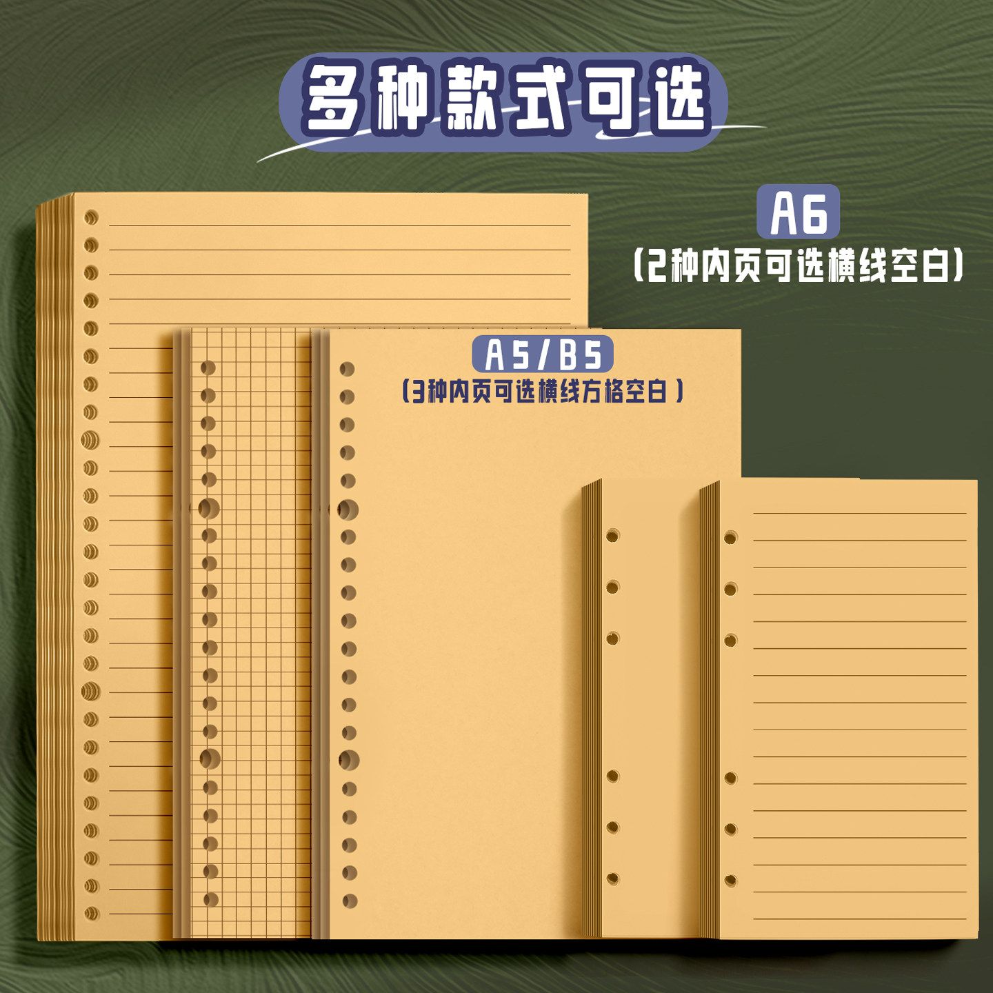 A6/A5/B5牛皮纸活页替芯活页笔记本本子内页替换芯简约复古替换页横线方格空白活页本纸张空白手帐本内芯替换