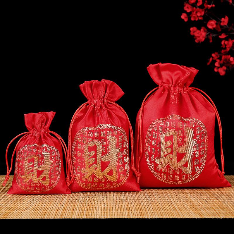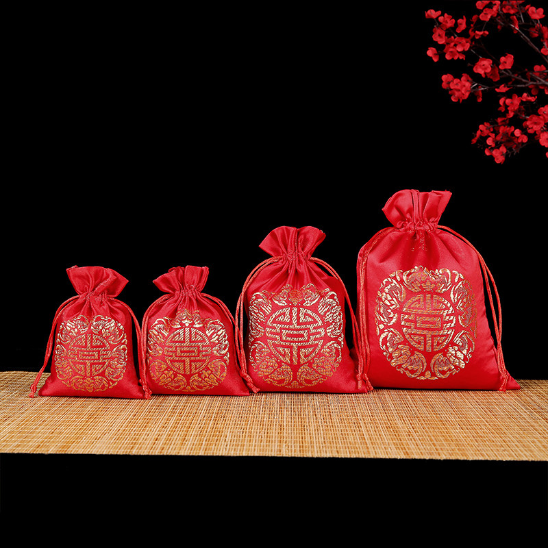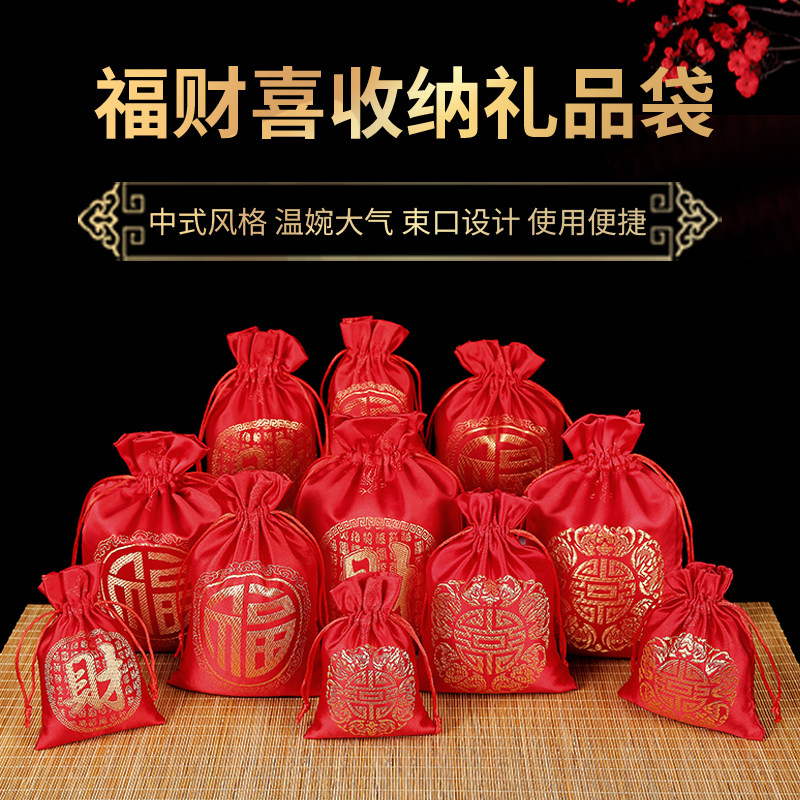 中国风刺绣提花礼品首饰袋束口防尘红布袋福财喜红包送礼布包香囊