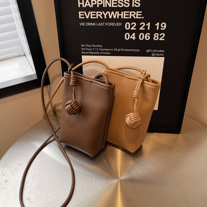 韩版文艺小清新软皮小圆球挂饰斜挎手机包女款休闲小包iphone包