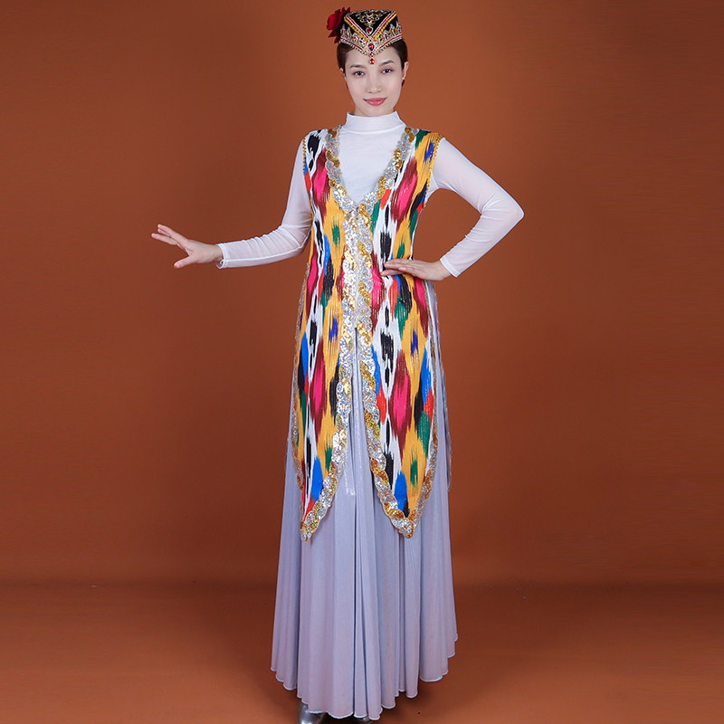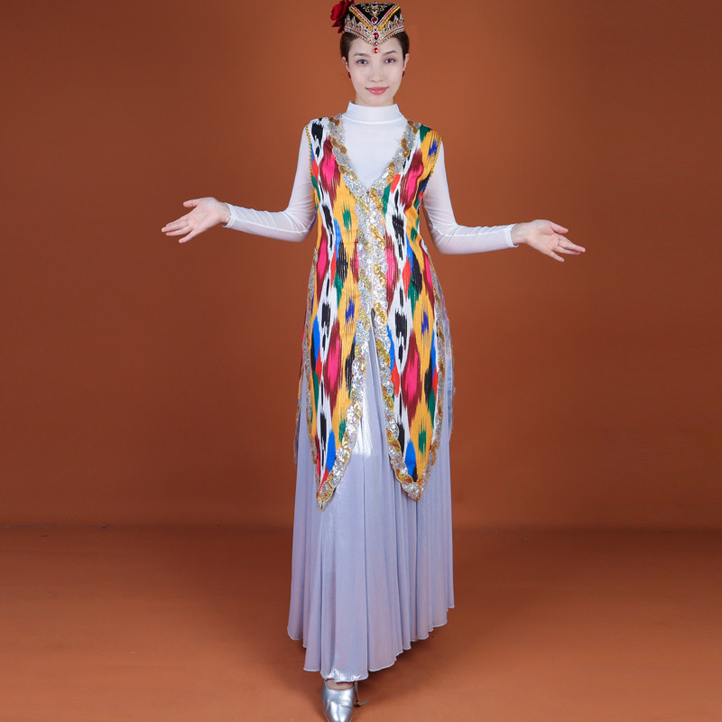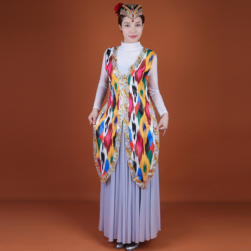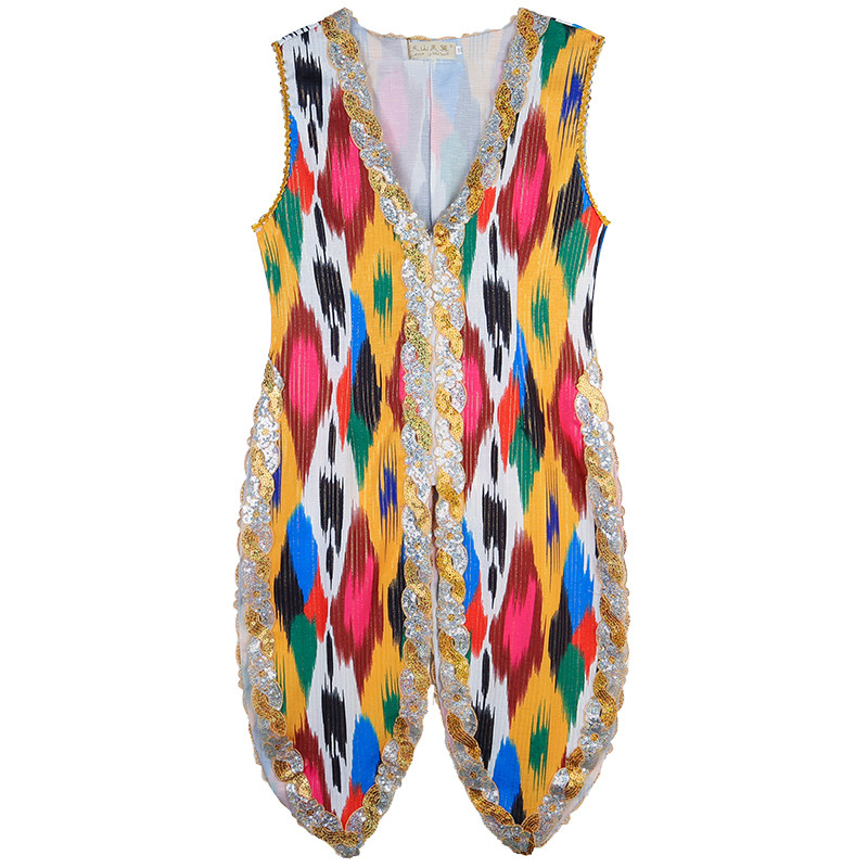 2025新款新疆舞蹈马甲成人艾德莱斯印花服饰维族舞蹈演出服装夏