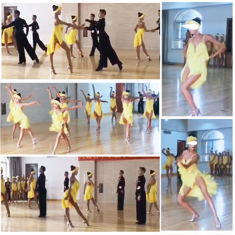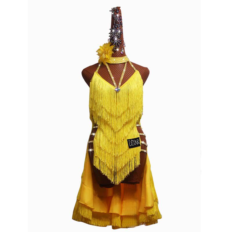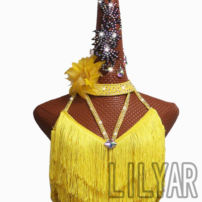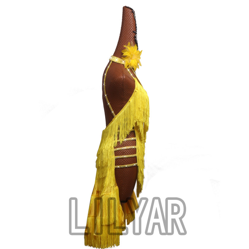 专业拉丁舞比赛服演出服黄色流苏高开叉性感舞裙新款表演服黎丽雅