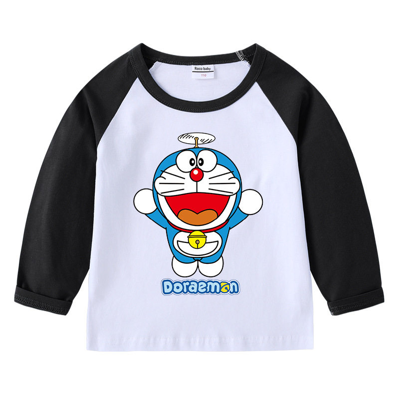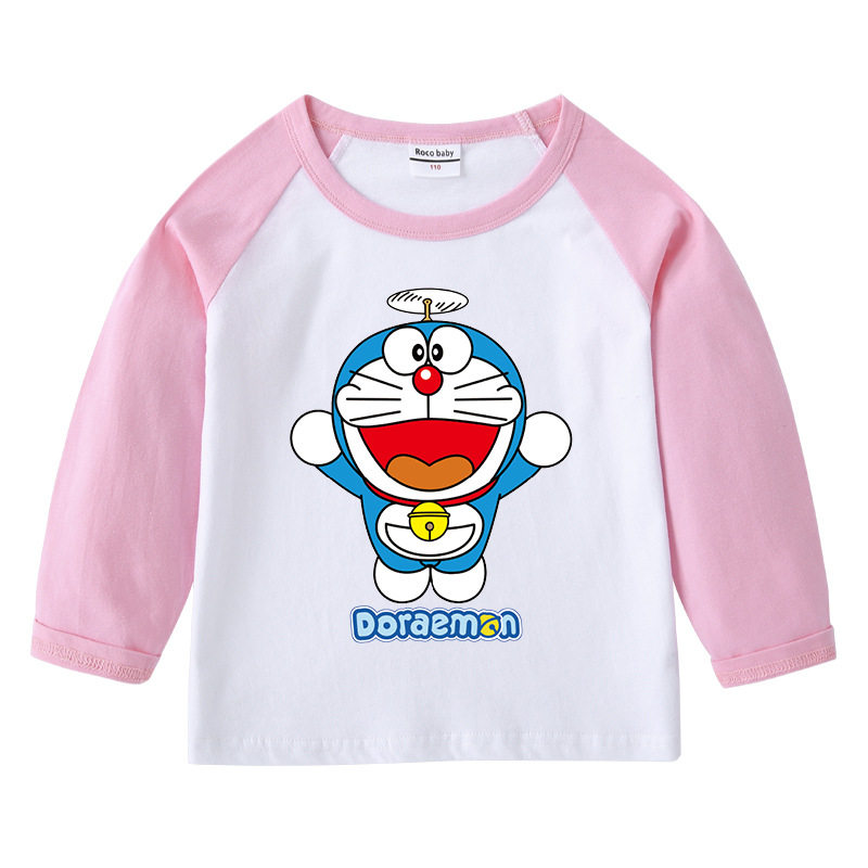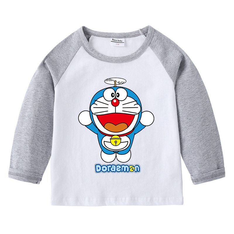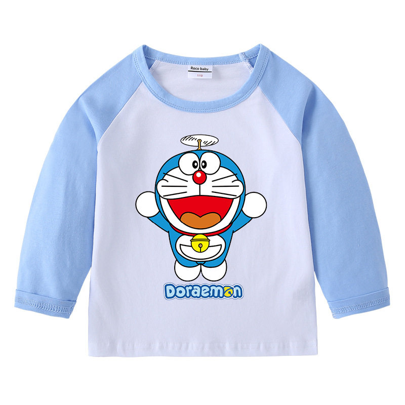 哆啦a梦男童春季薄款长袖T恤女童宝宝纯棉上衣春装儿童叮当猫衣服