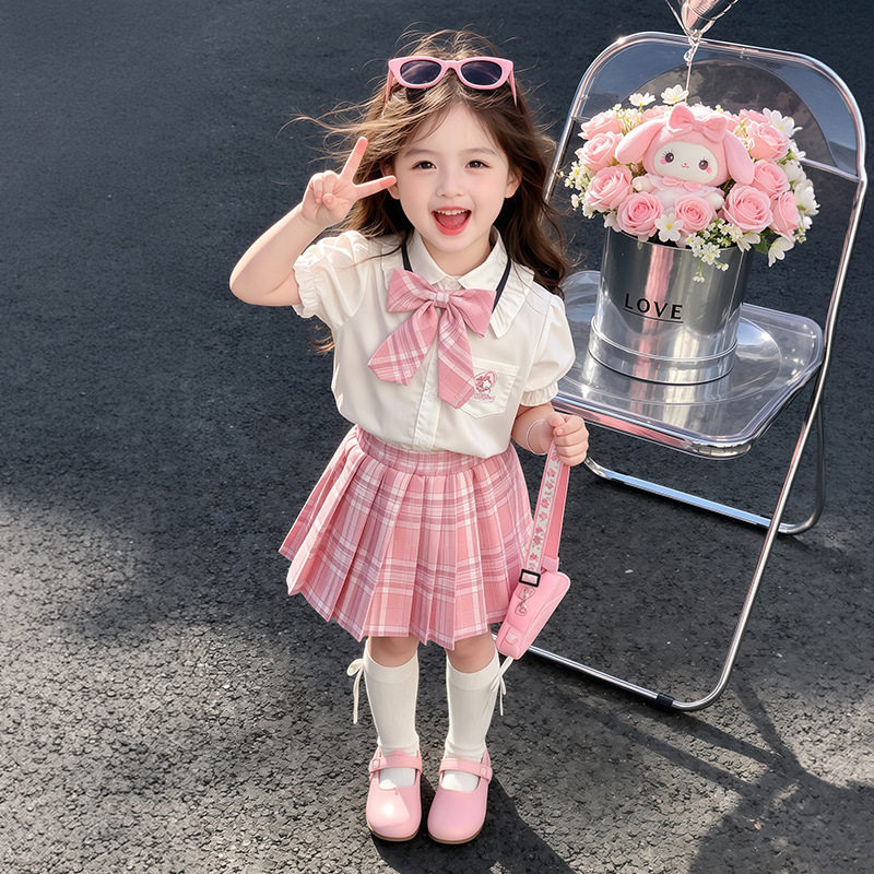 女童夏季套装2026新款儿童卡通薄款衣服夏装学院风女宝宝夏天裙子