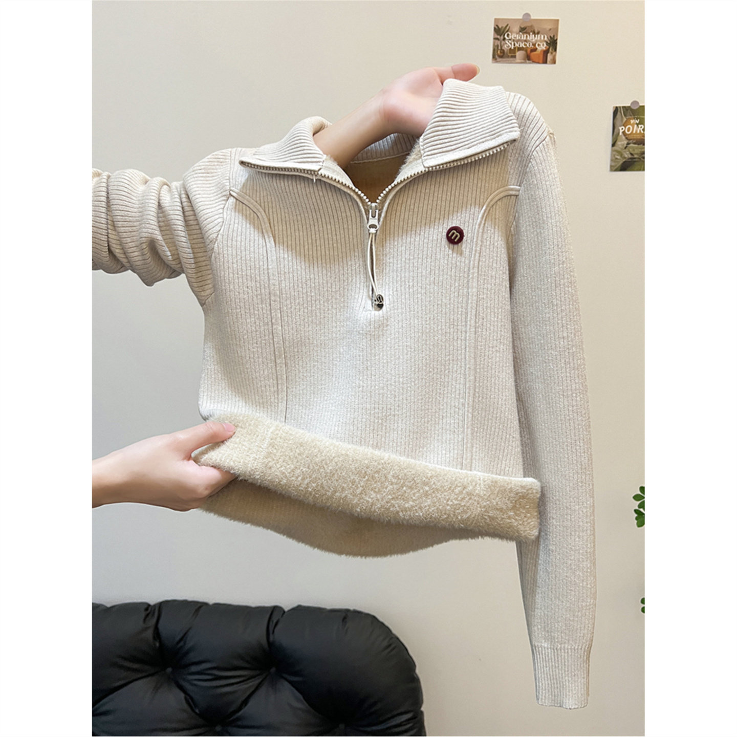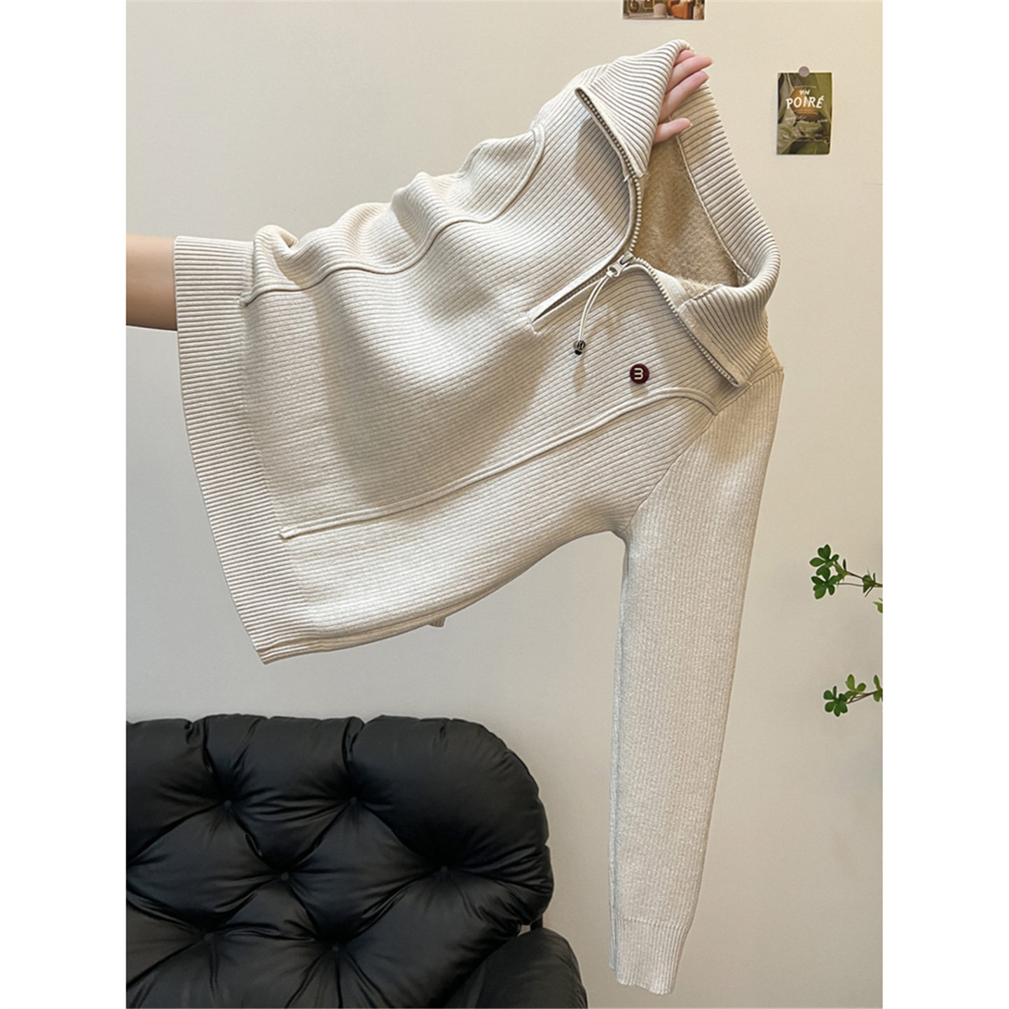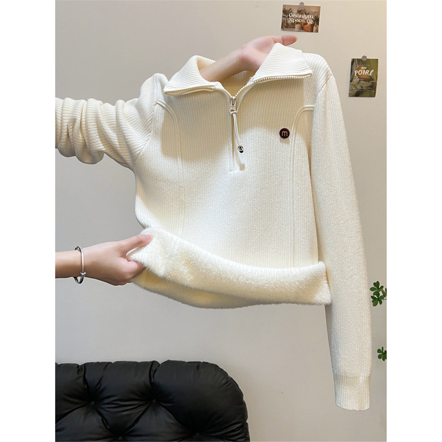 加绒加厚半高领拉链毛衣针织衫女秋冬高级感内搭可外穿打底衫上衣