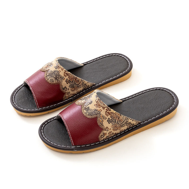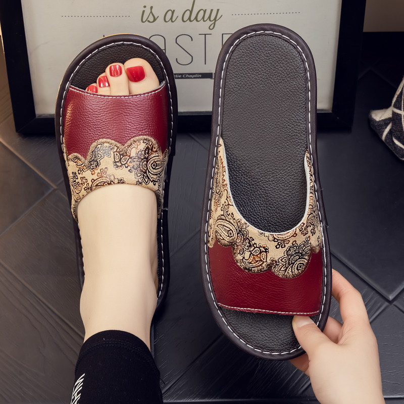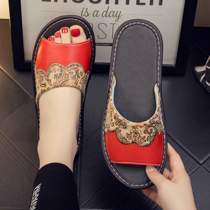 复古风真皮拖鞋室内男女居家用房间夏季防滑软底老人全牛皮凉拖鞋