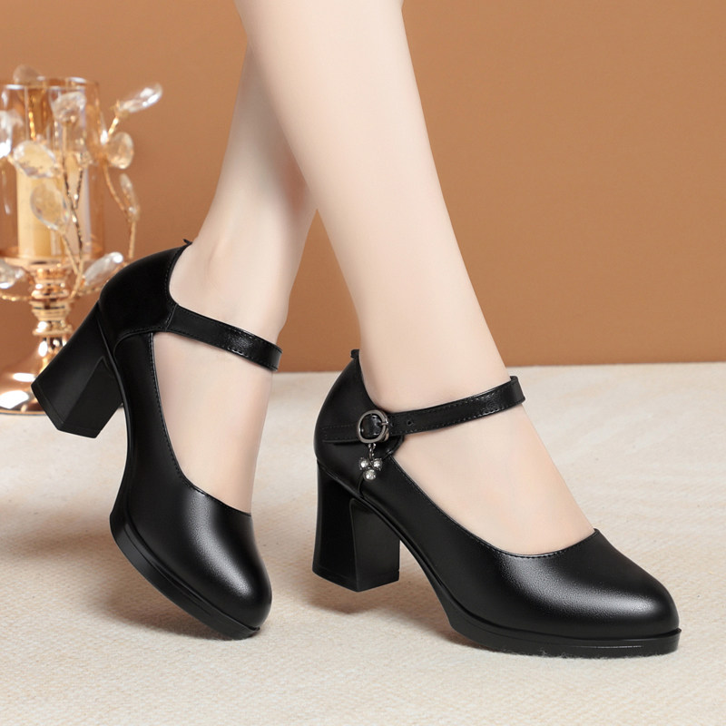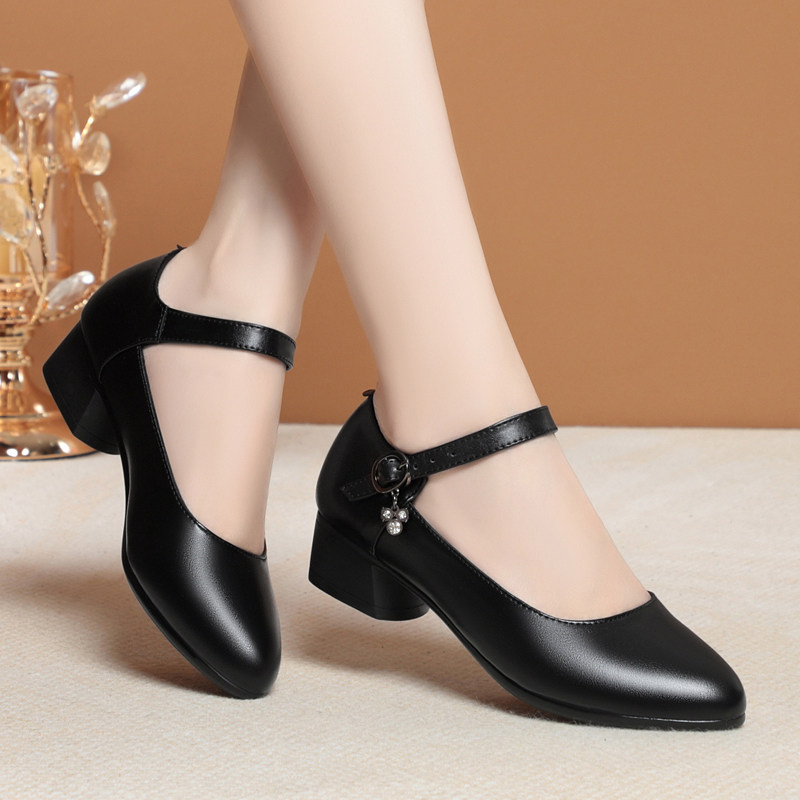 意尔康2026春季新款女单鞋正品真皮女鞋时尚休闲粗跟中跟软牛皮鞋