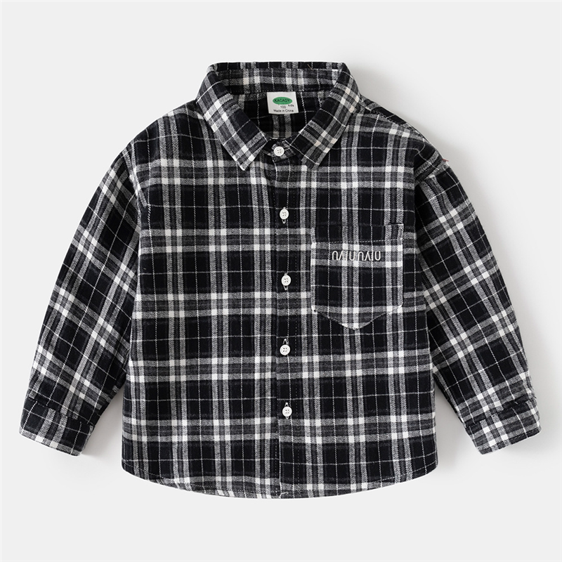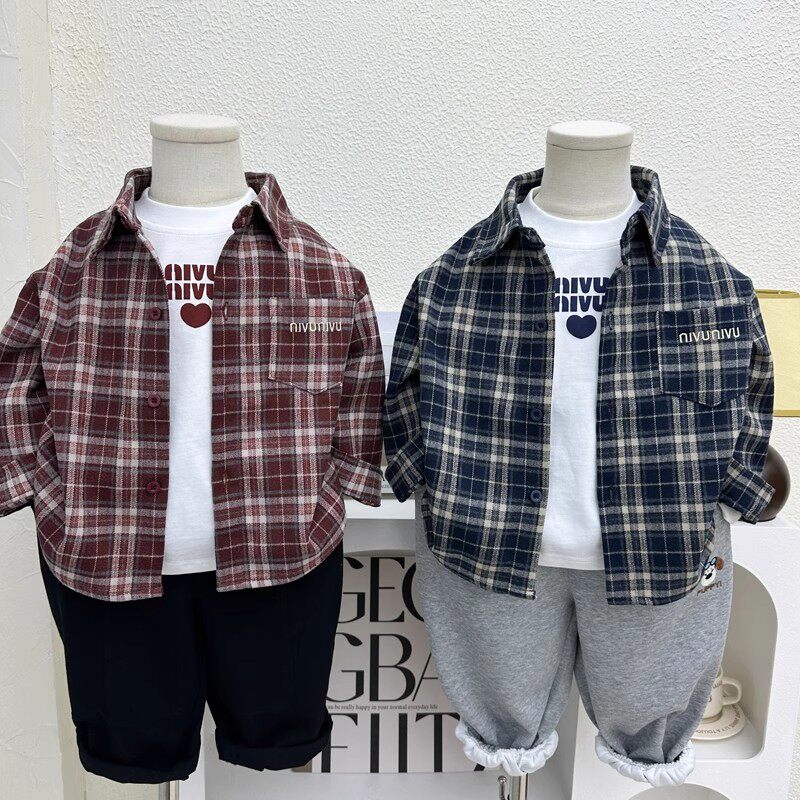 男童春装长袖衬衫2025新款儿童洋气时髦格子薄款衬衣男孩春秋上衣