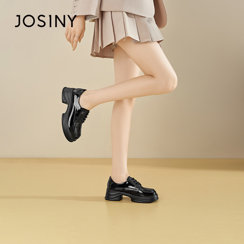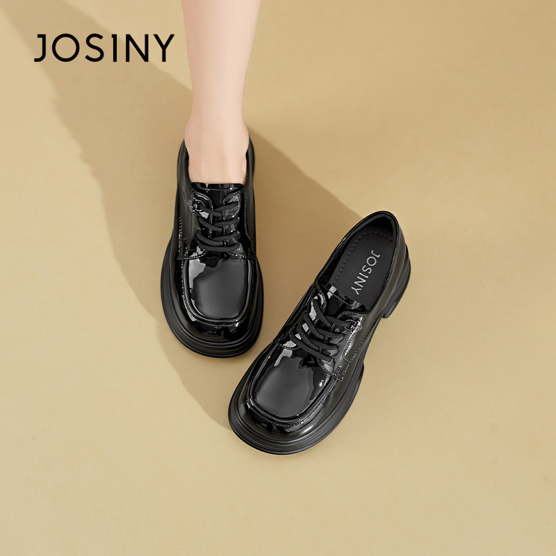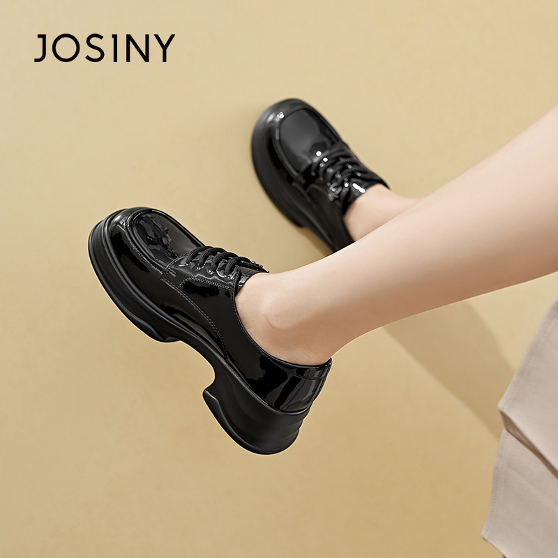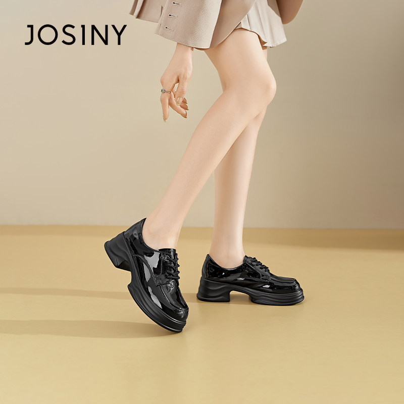 卓诗尼2026年春季新款女鞋厚底单鞋英伦风小皮鞋漆皮乐福鞋牛津鞋