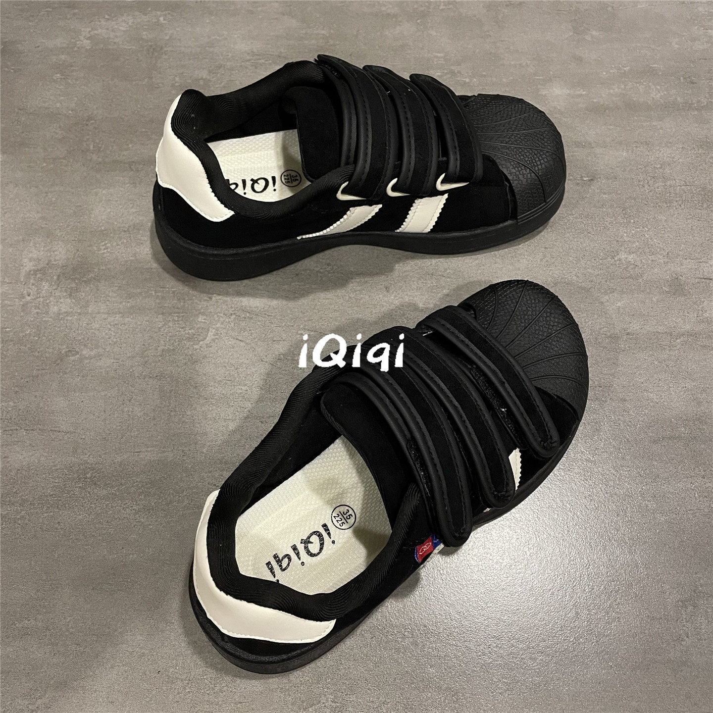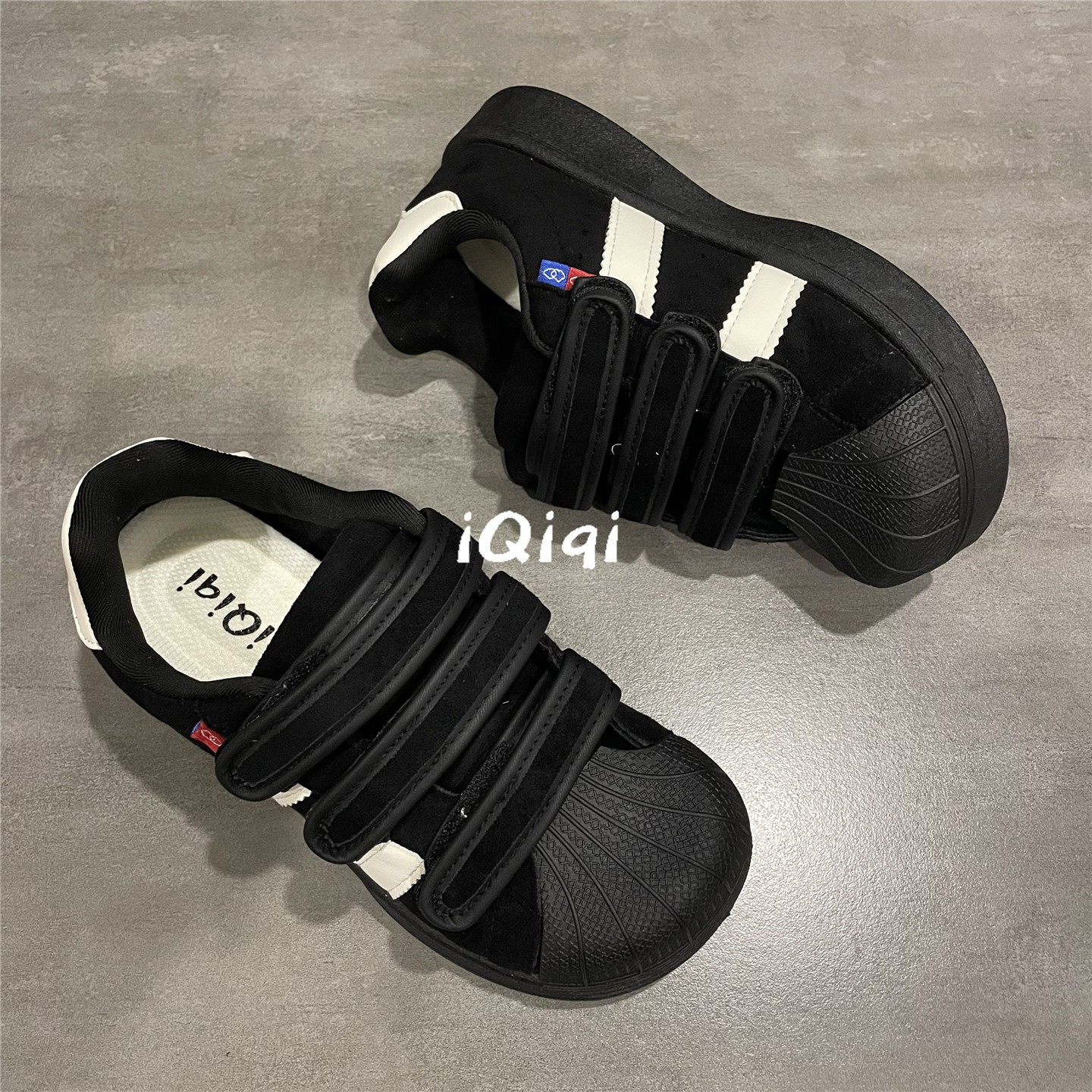 七七主人家 黑色魔术贴鞋子女2025春秋季新款板鞋女款休闲工装风