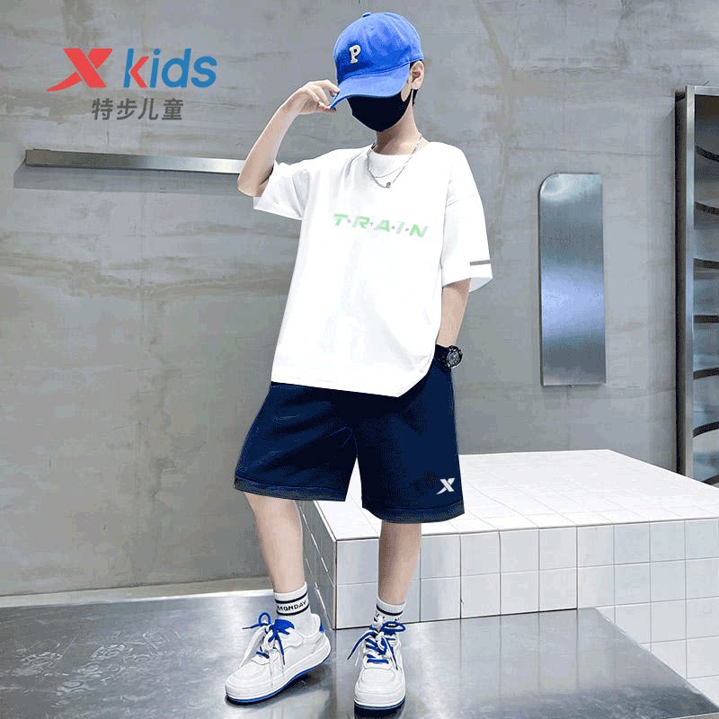 特步童装男童短袖套装2026春季新款儿童时髦帅气运动服中大童夏装