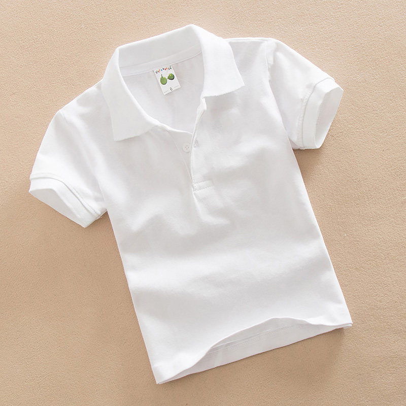 儿童白色T恤男童夏装女童POLO衫纯棉翻领上衣宝宝短袖班服卡通