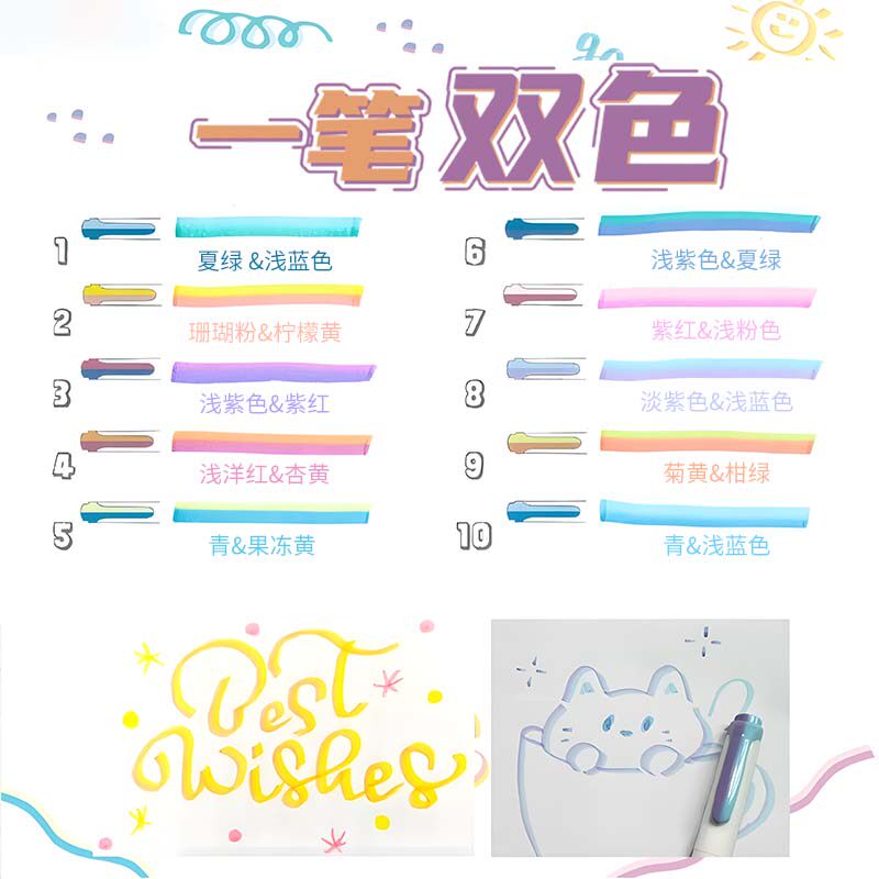 【2026新款】ZEBRA斑马双色荧光笔WKS23小学生专用划重点初中生专用记号笔彩色标记笔高颜值ins风手账彩色笔