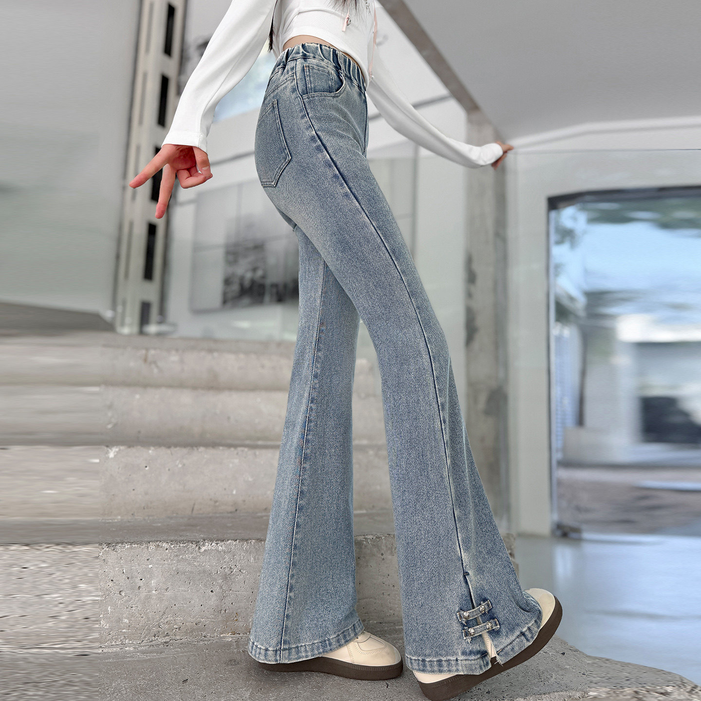 女童喇叭牛仔裤2026新款洋气青少年儿童裤子女孩春装微喇大童春季