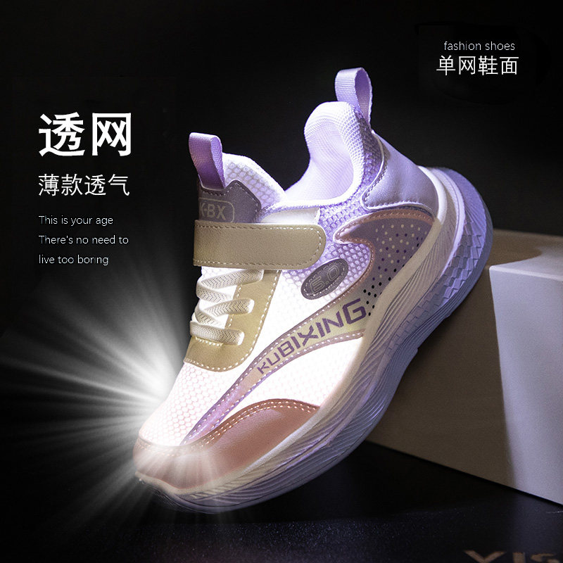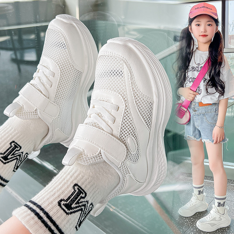 女童白色运动鞋2026春夏新款中大童单网透气休闲鞋儿童软底小白鞋