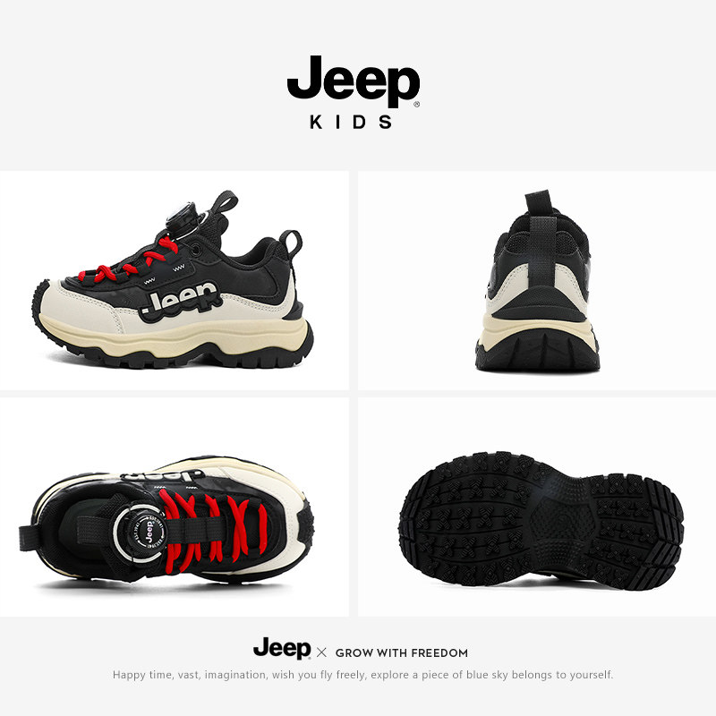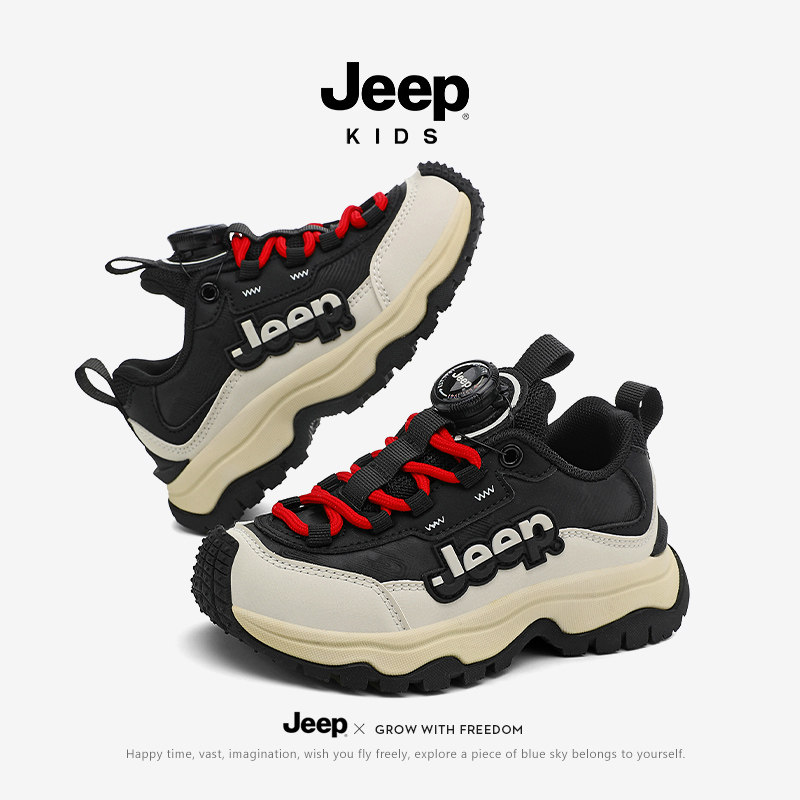 jeep儿童运动鞋男女童2026春季新款皮面防滑登山鞋软底跑步鞋男孩