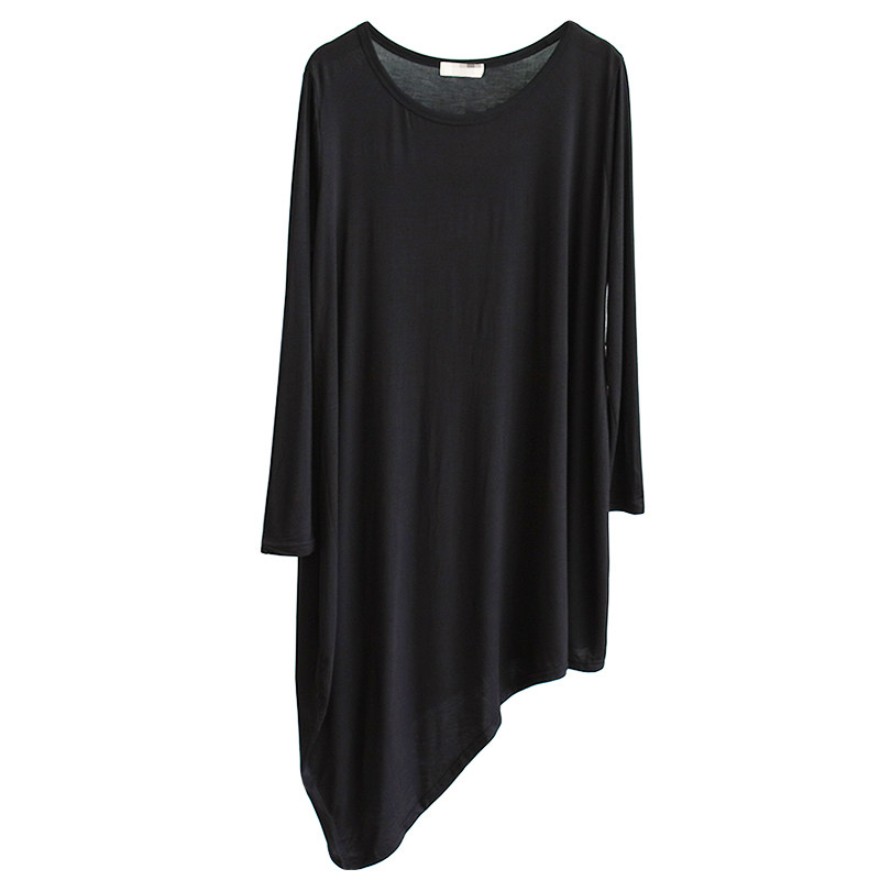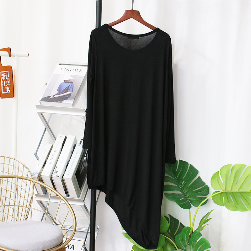 垂感不规则莫代尔连衣裙女设计感斜下摆中长款长袖T恤裙子舞蹈服