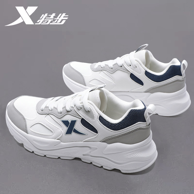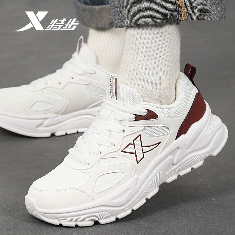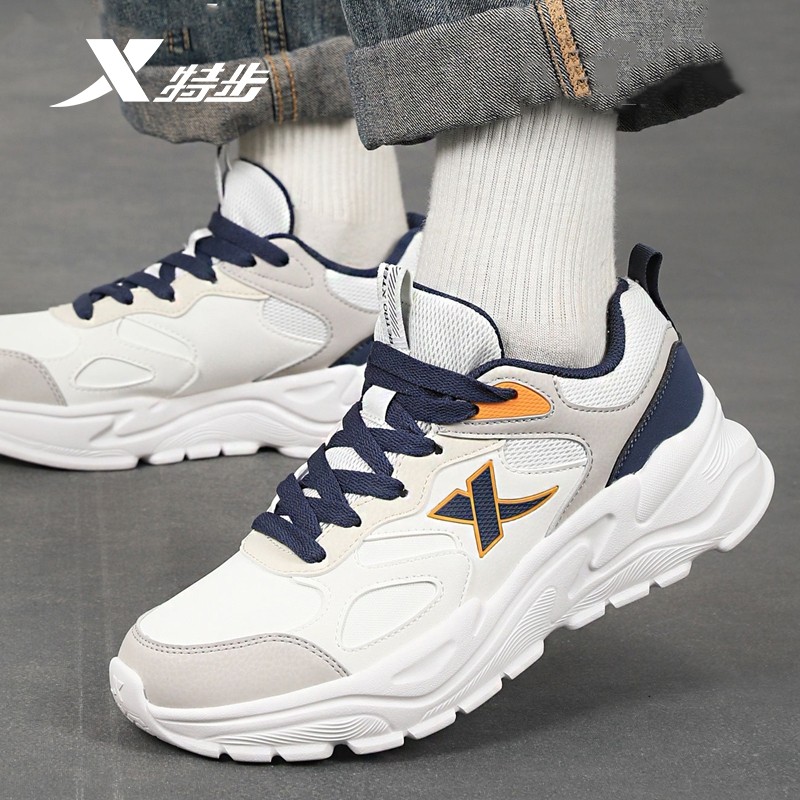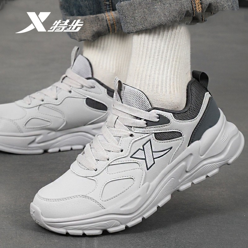 特步男鞋老爹鞋春季官方旗舰店正品休闲鞋子男防水皮面运动鞋男士