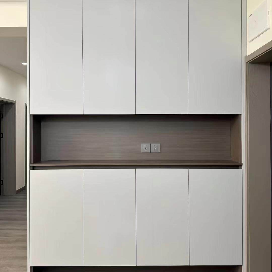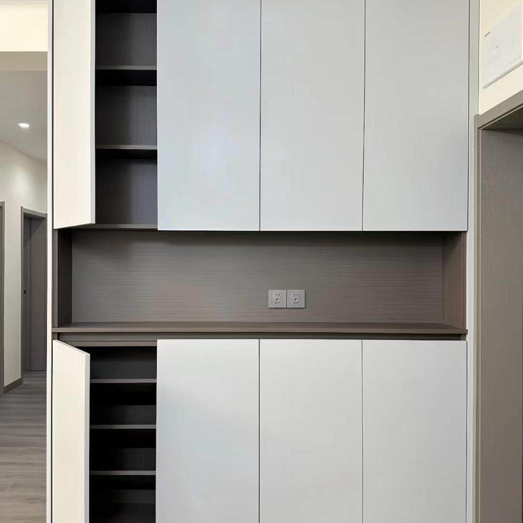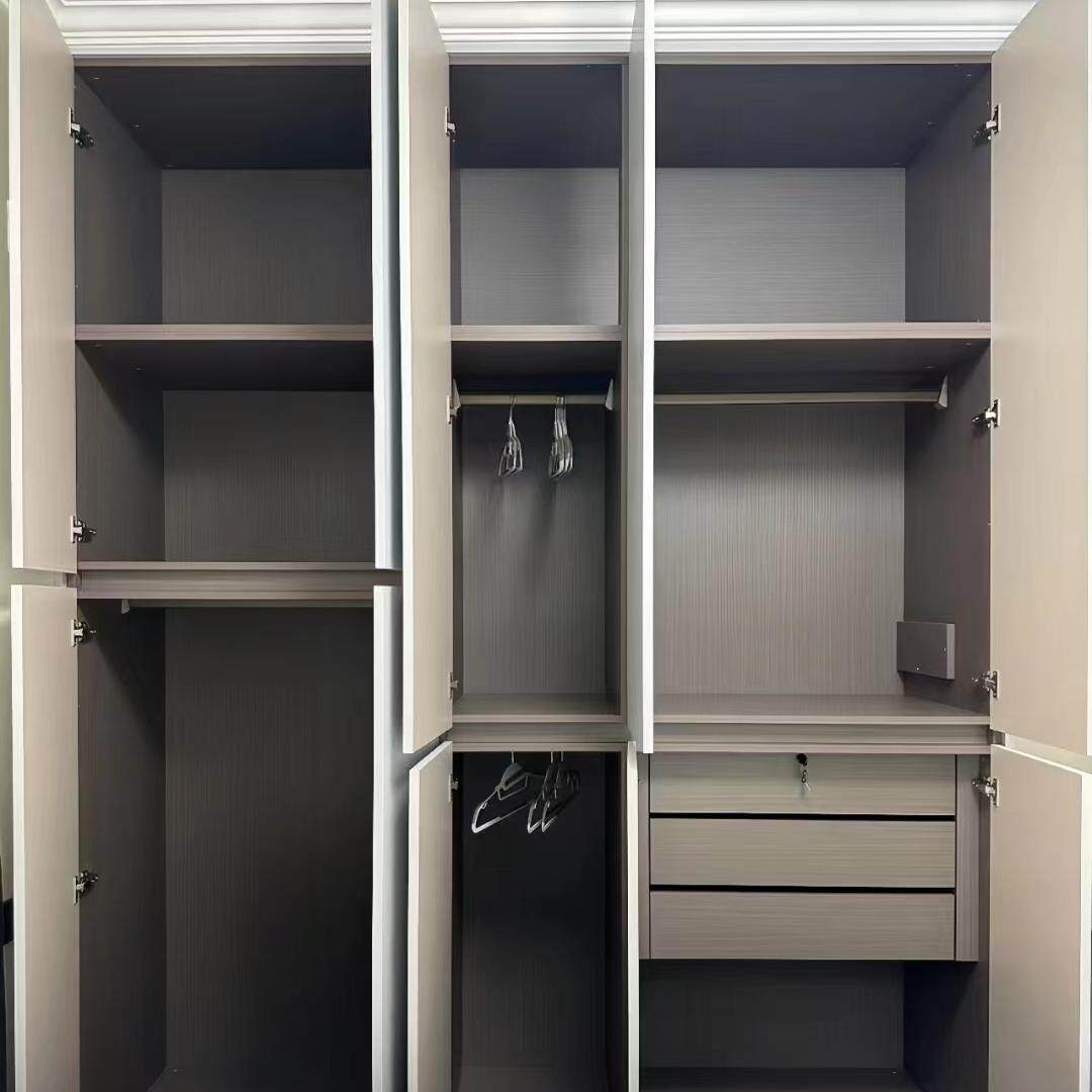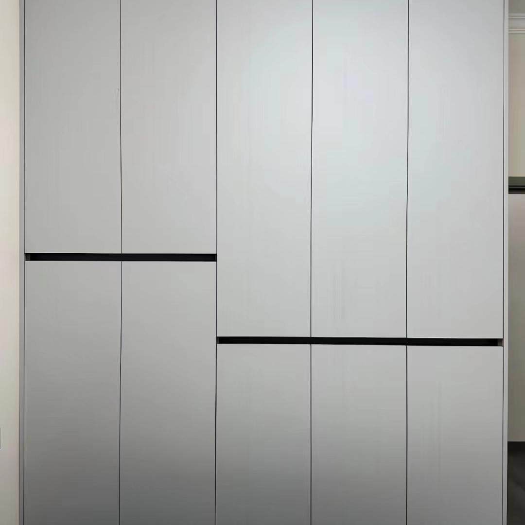 成都全屋定制工厂定制颗粒多层欧松板衣柜实木衣柜免拉手一门到顶