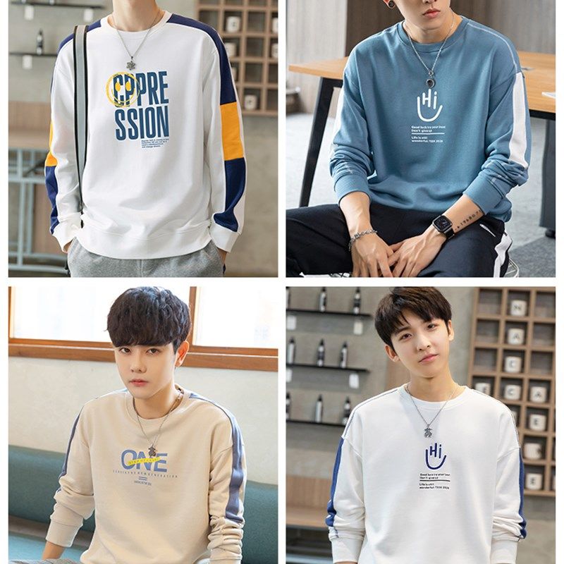 纯棉卫衣男款2023春季新款青少年帅气潮春秋加绒夏季薄款长袖t恤