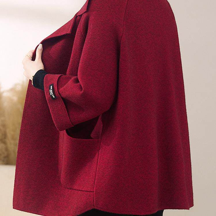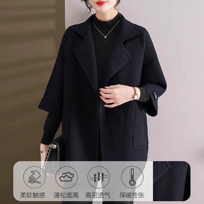 中年妈妈洋派双面呢外套女春秋2025新款秋冬大尺码风衣时尚羊绒大