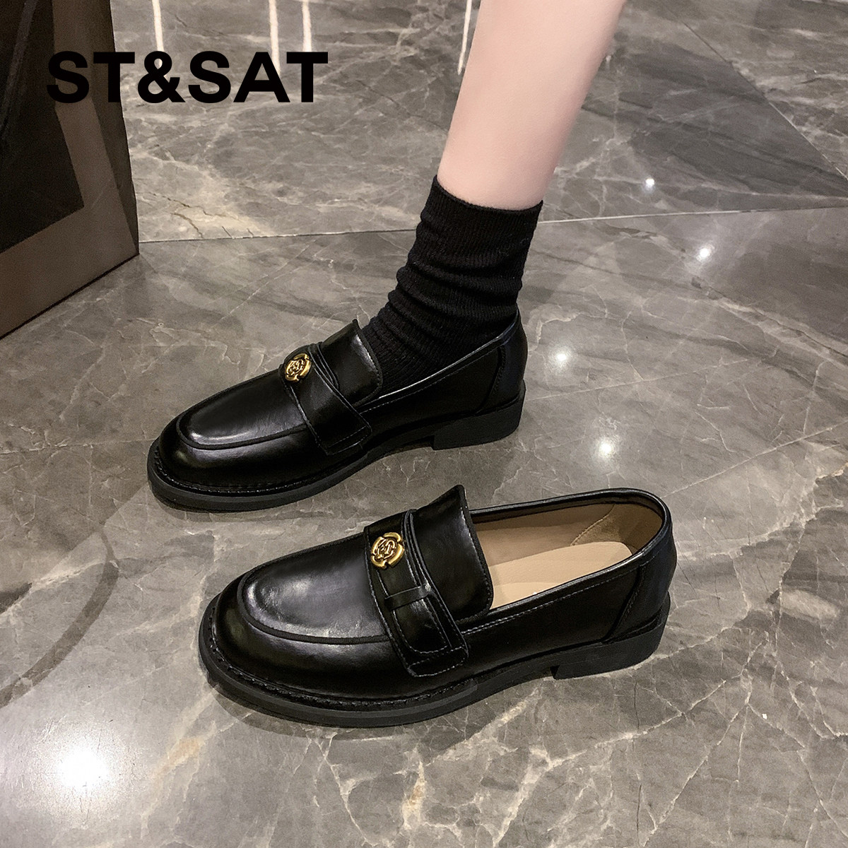 星期六山茶花乐福鞋女鞋2025新款秋冬英伦风一脚蹬厚底小皮鞋单鞋