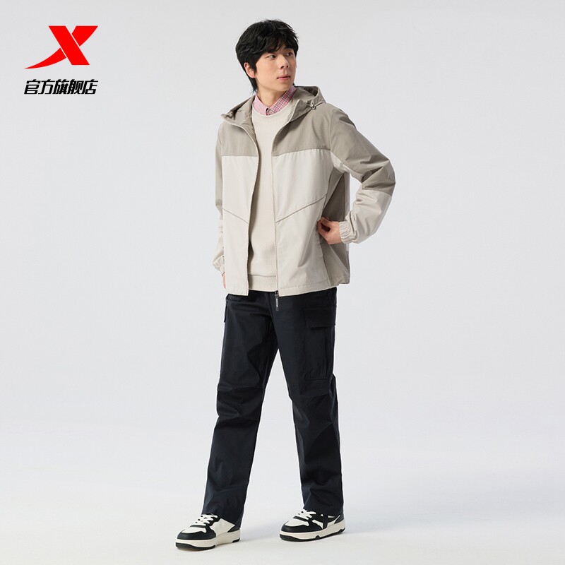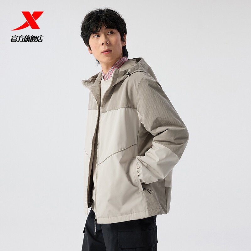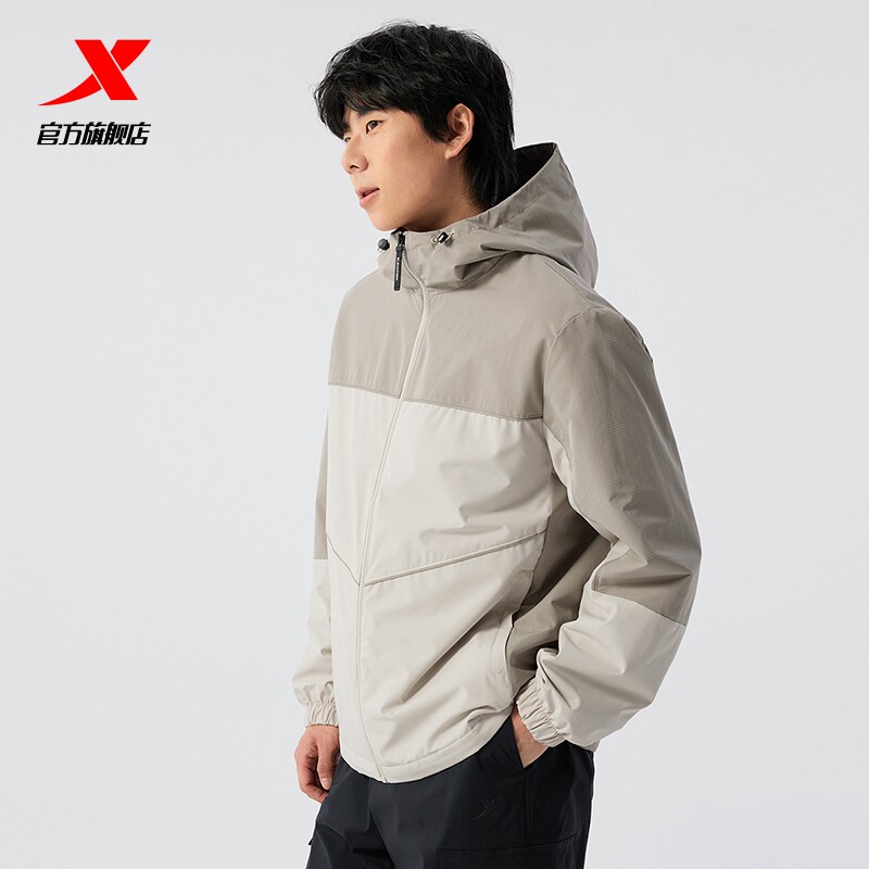 特步外套男士2026春季新款户外保暖风衣男夹克梭织官方旗舰店正品