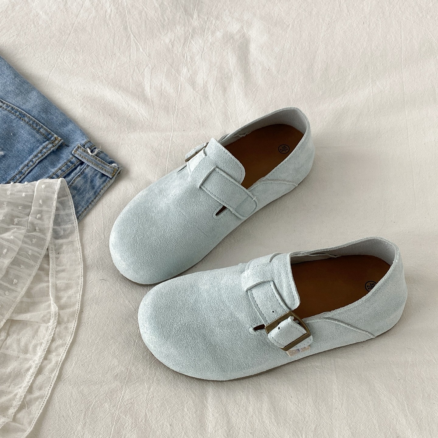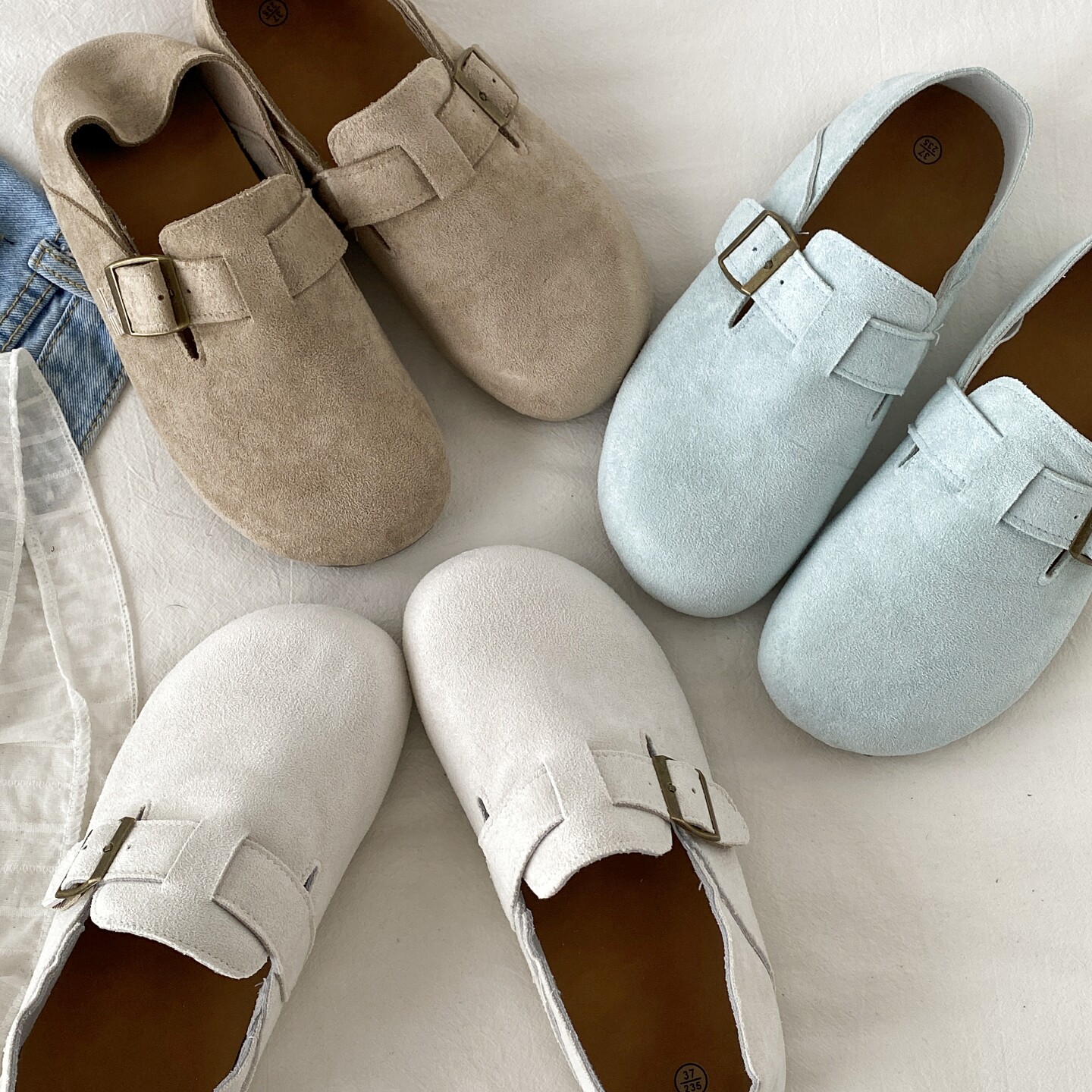 喜叔复古白色勃肯鞋女款2025秋季新款两穿一脚蹬博肯鞋内增高单鞋