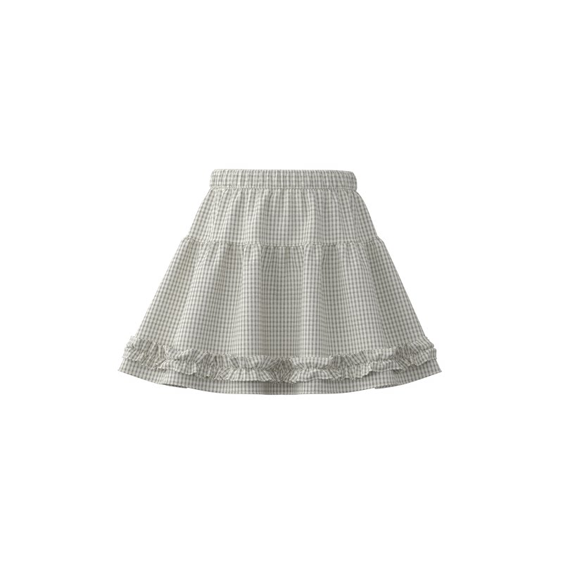 papa爬爬春夏季儿童裙子女童纯棉格子花边半身裙甜美洋气