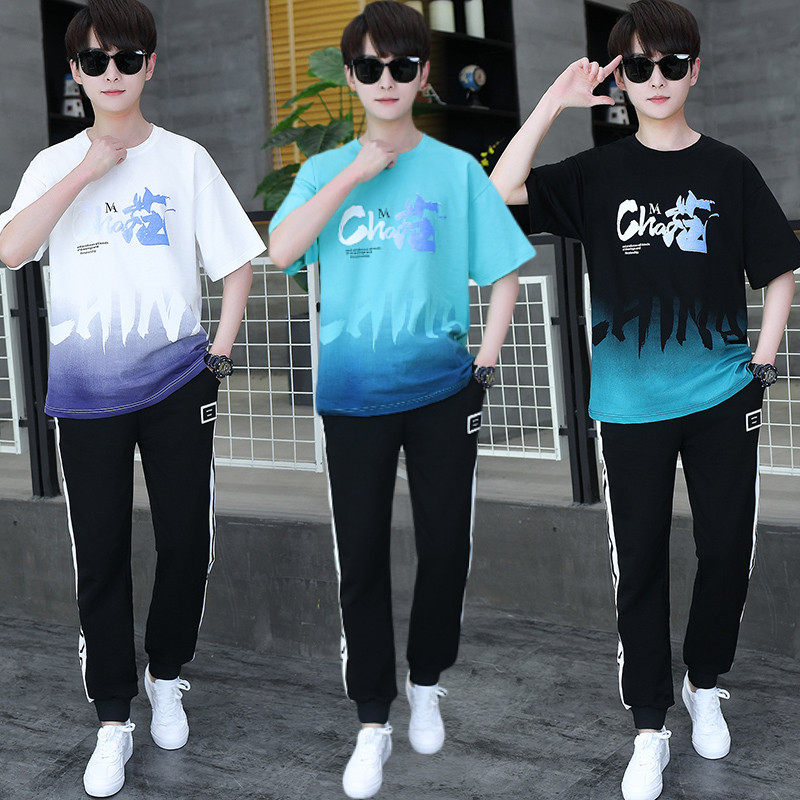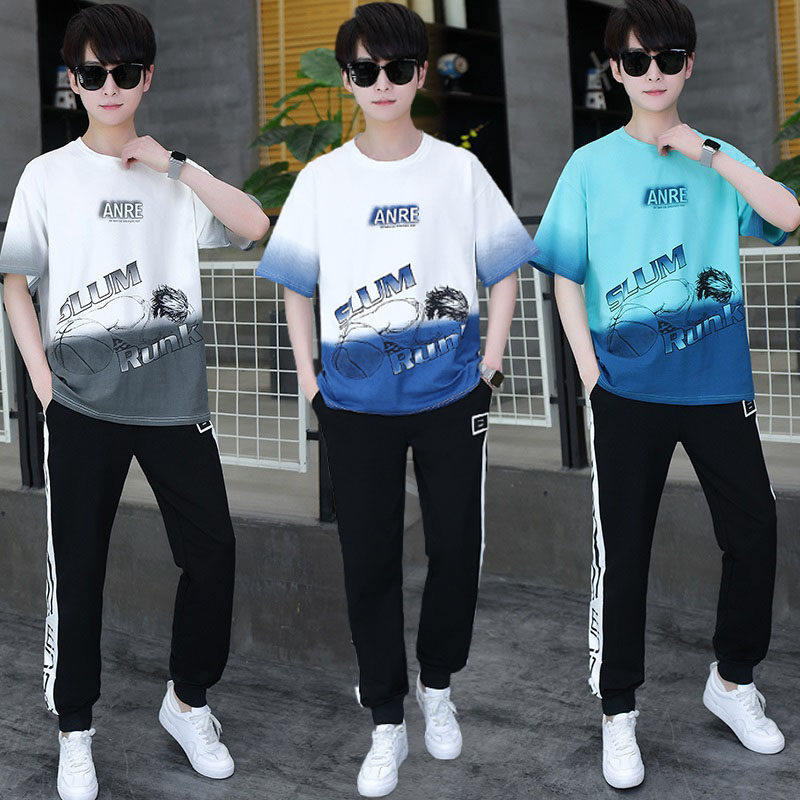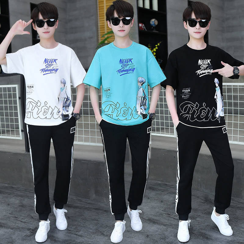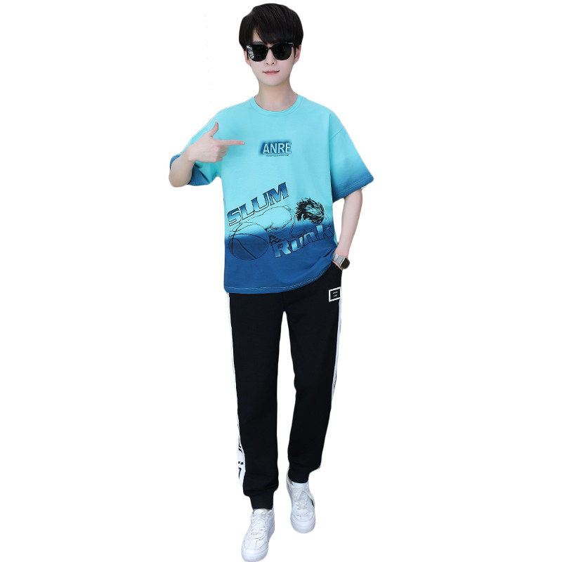 全棉纯棉夏季青少年短袖t恤男孩衣服高中初中学生大童夏装帅气运