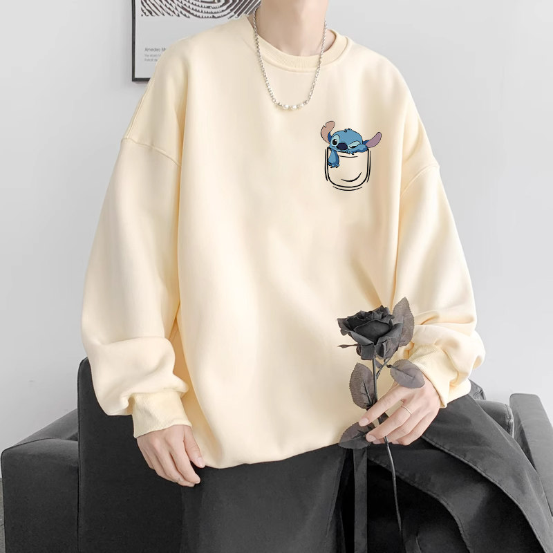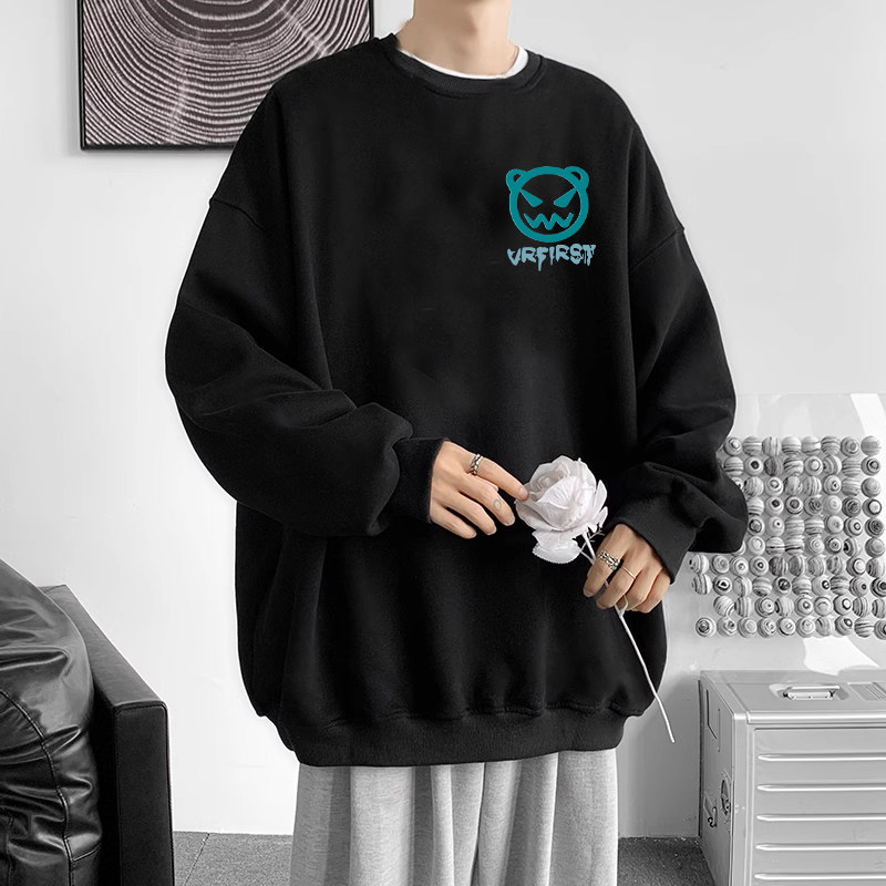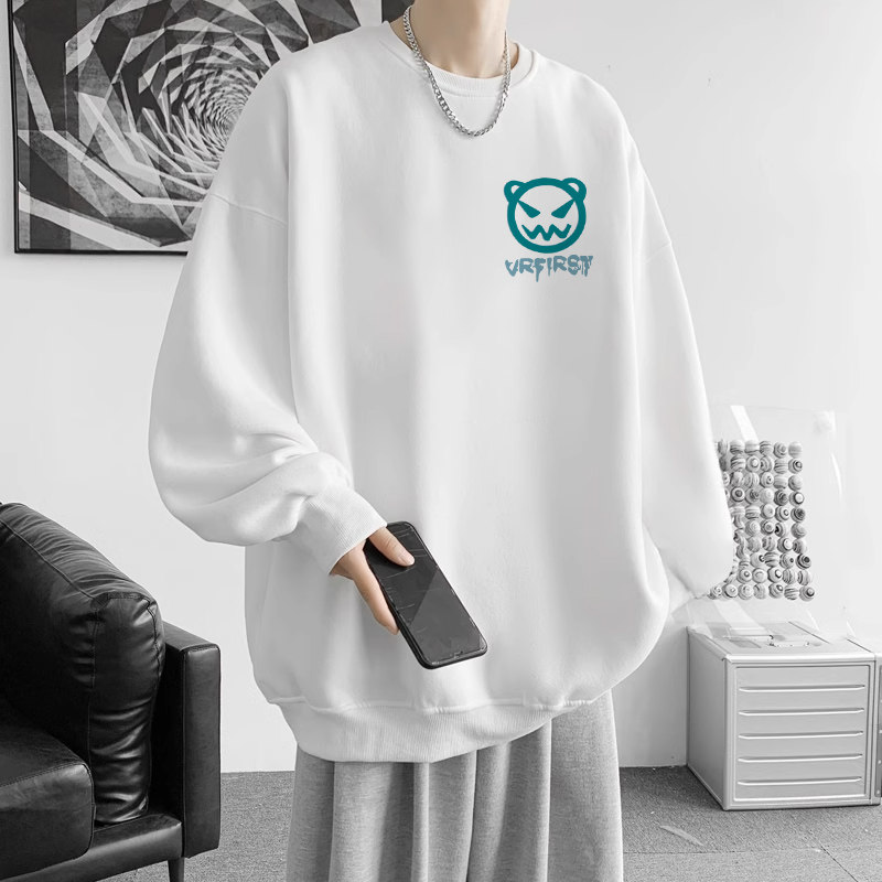 青少年圆领卫衣男秋冬季纯棉2024新款港风潮牌初中生宽松加绒上衣