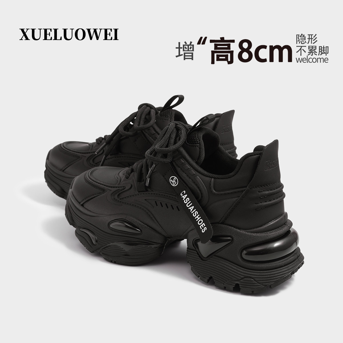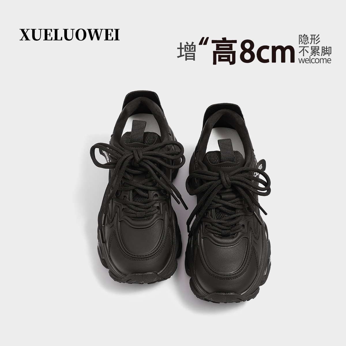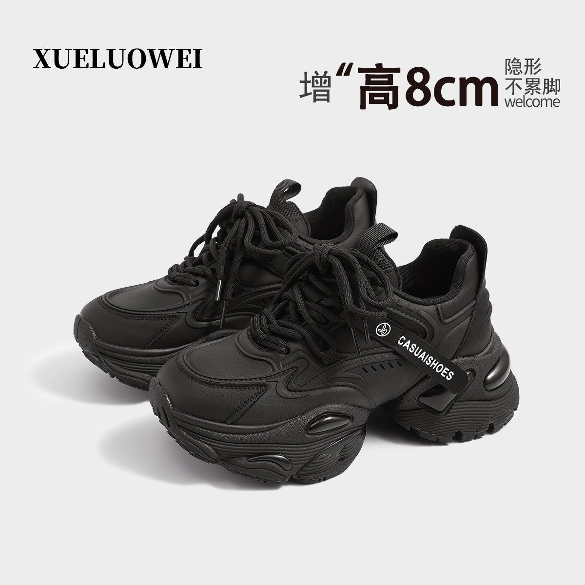 XUELUOWEI休闲风厚底老爹鞋女内增高8cm白色百搭运动鞋子轻便透气