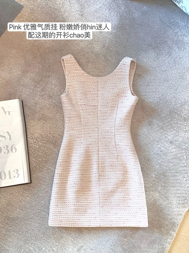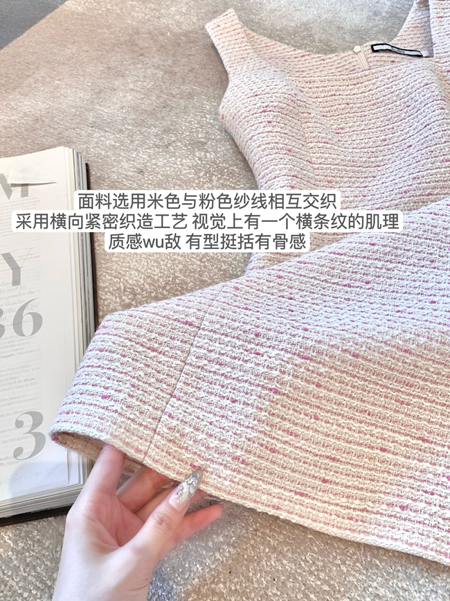 小香风连衣裙女秋冬气质名媛高级感粗花呢无袖吊带背心裙子