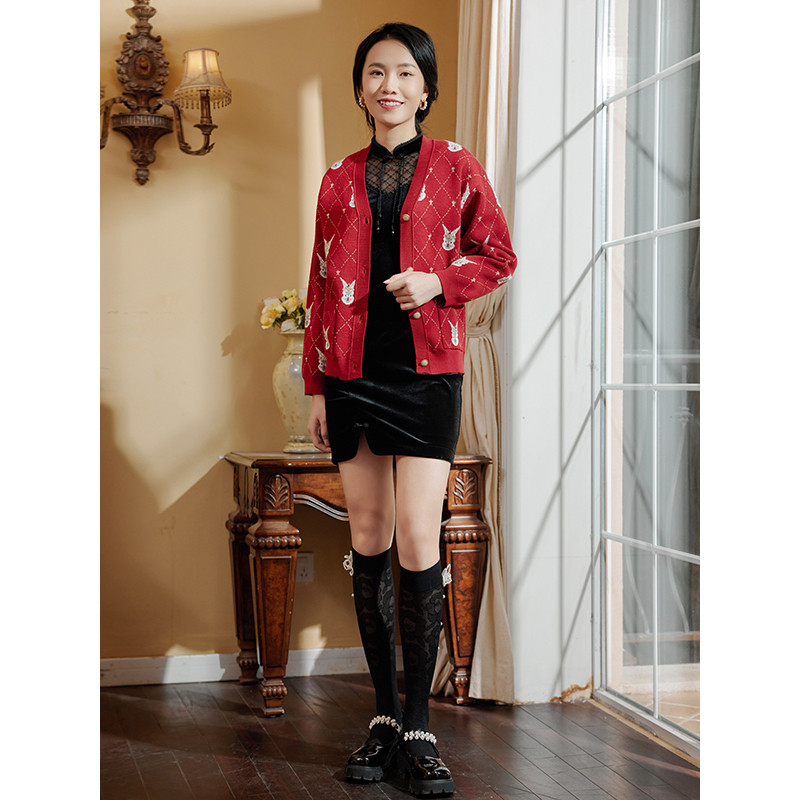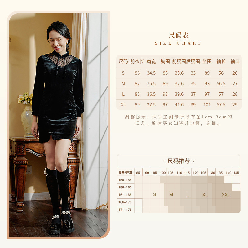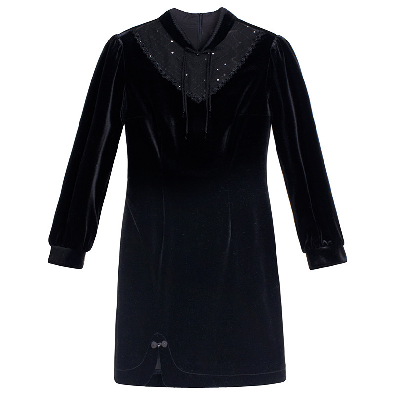 固执春季新款中式复古长袖短款丝绒连衣裙00031QP07758