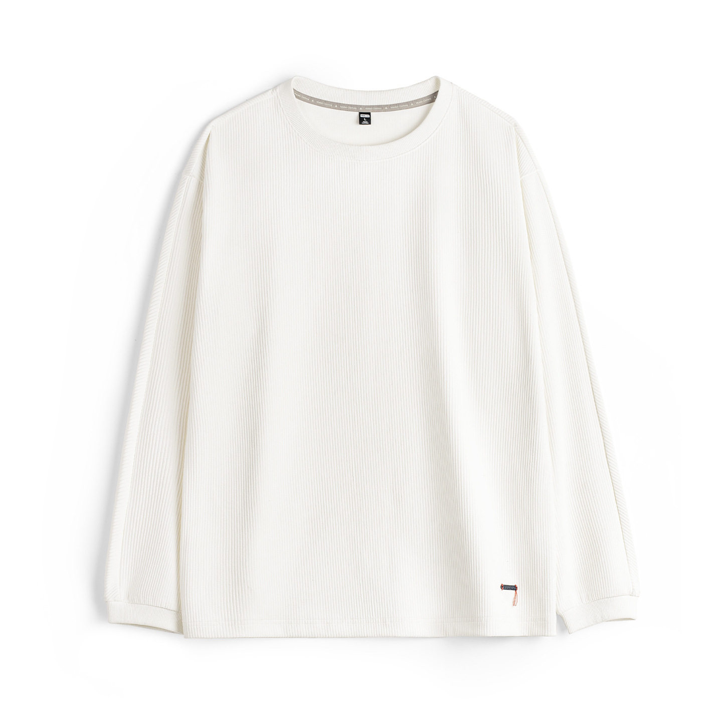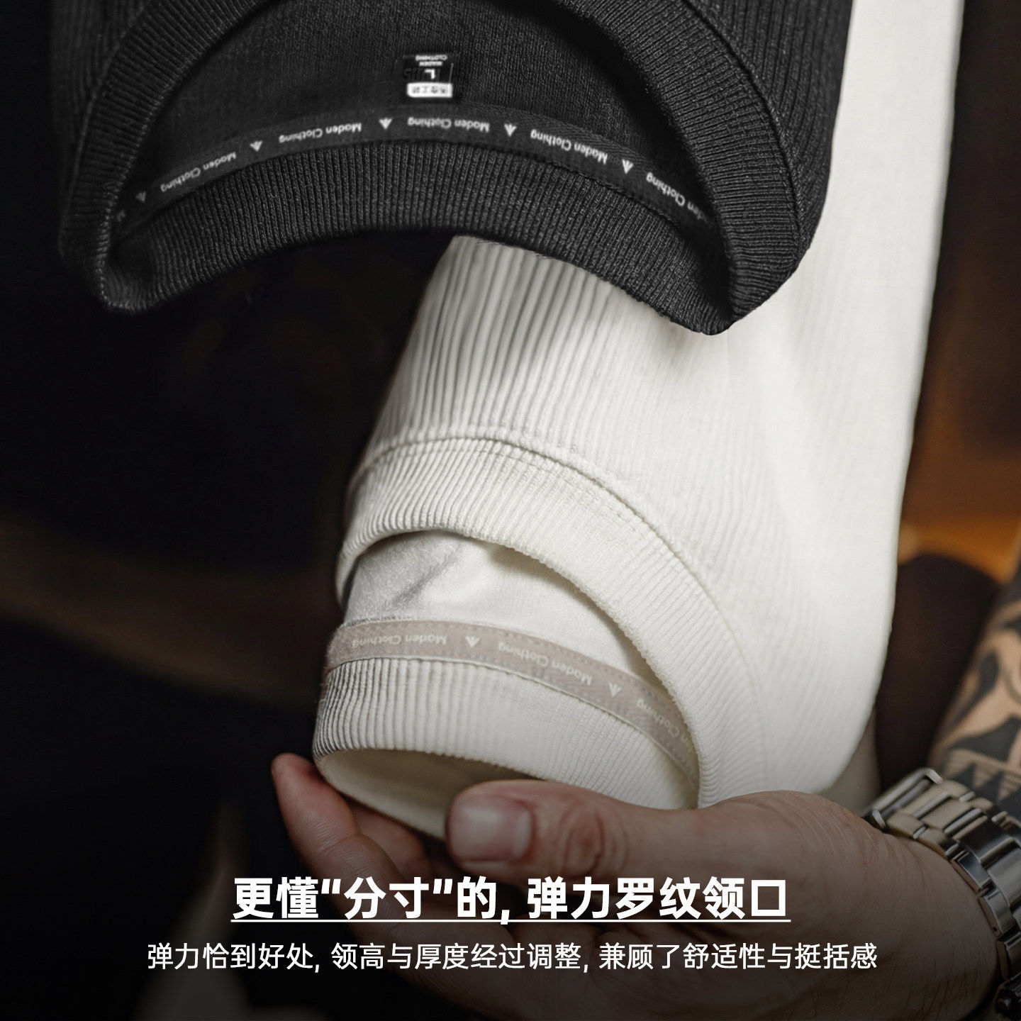 马登工装美式3D坑条长袖T恤白色打底外穿薄款针织无帽卫衣男款春