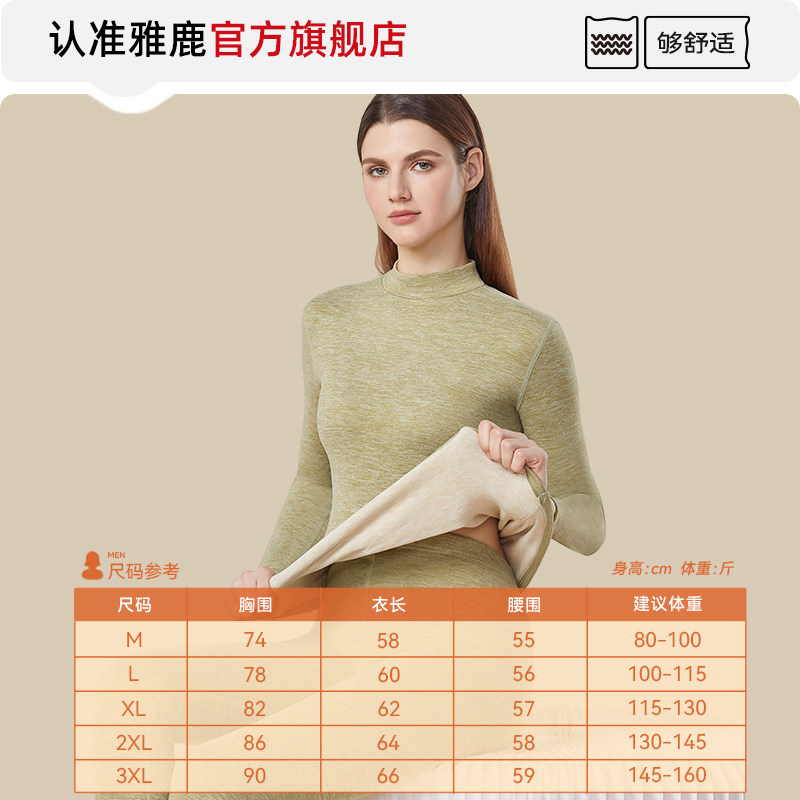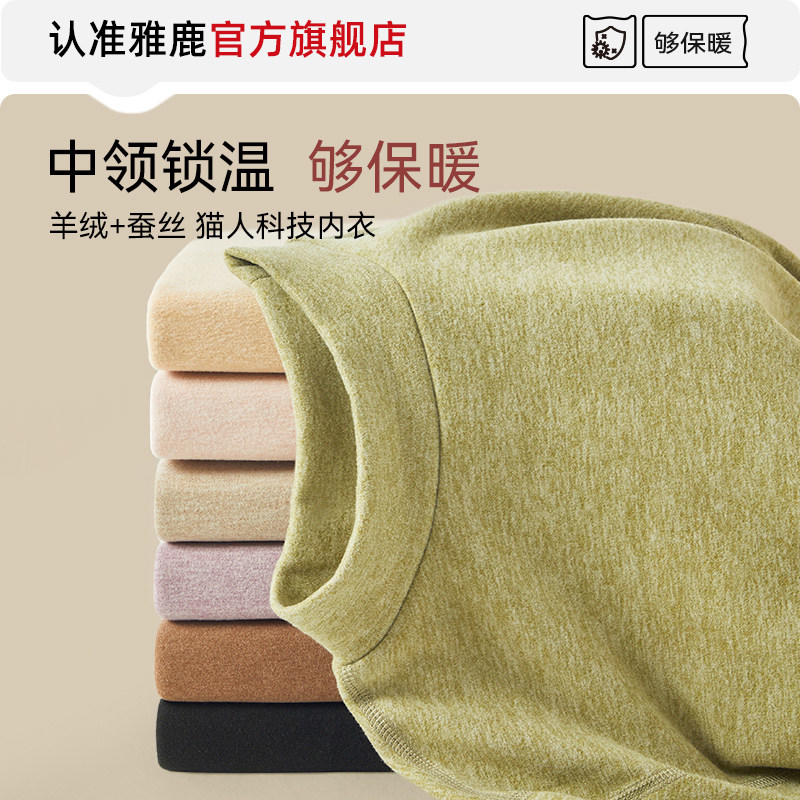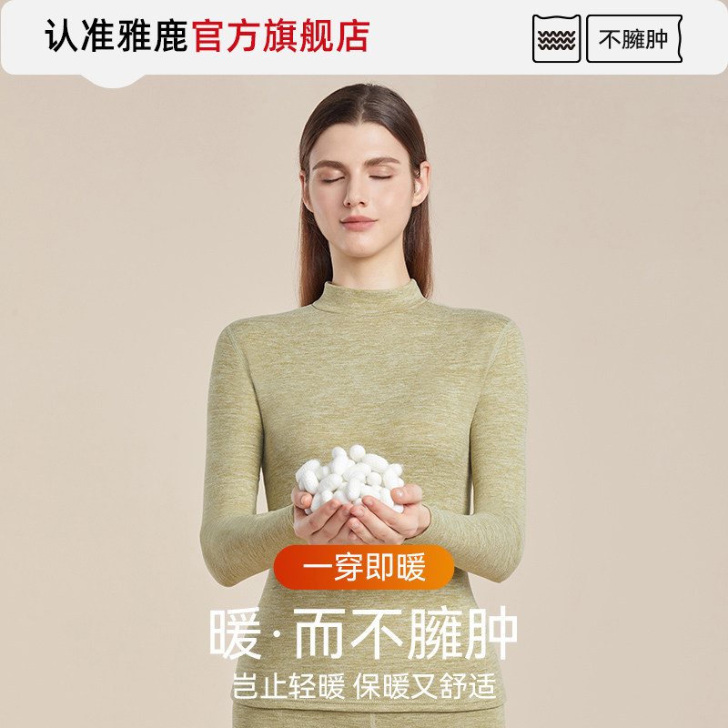 雅鹿秋衣秋裤套装女羊毛蚕丝打底衫发热德绒保暖内衣女款冬季上衣