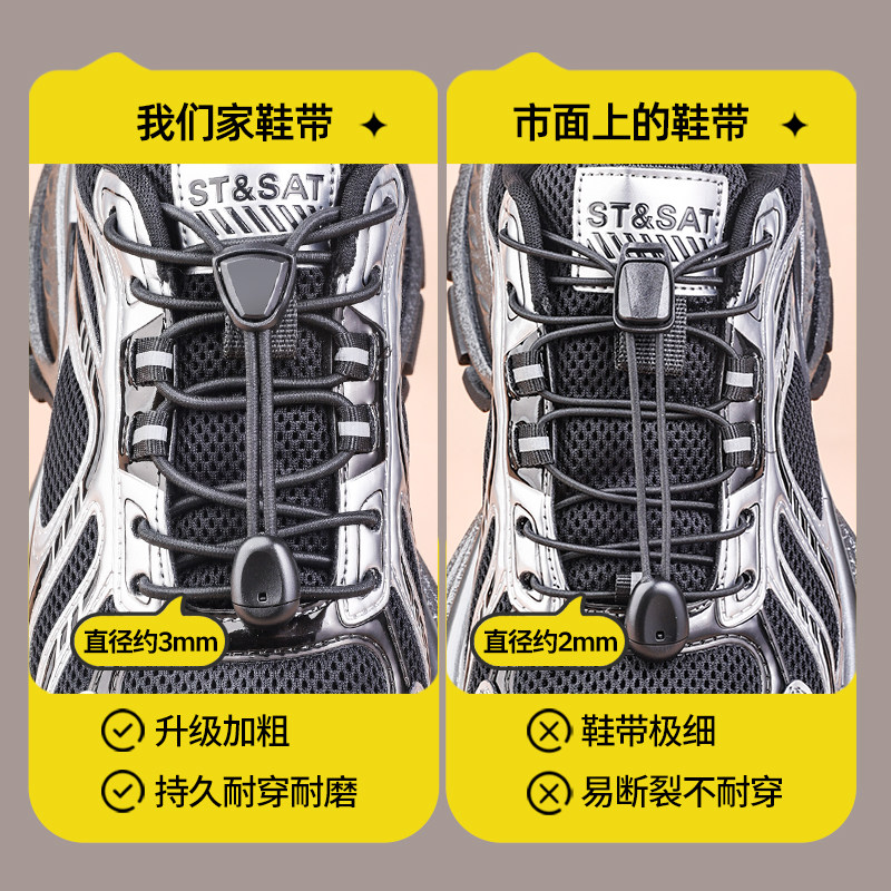 懒人鞋带免系神器男女款马丁靴运动鞋白色圆形弹力松紧鞋带绳卡扣