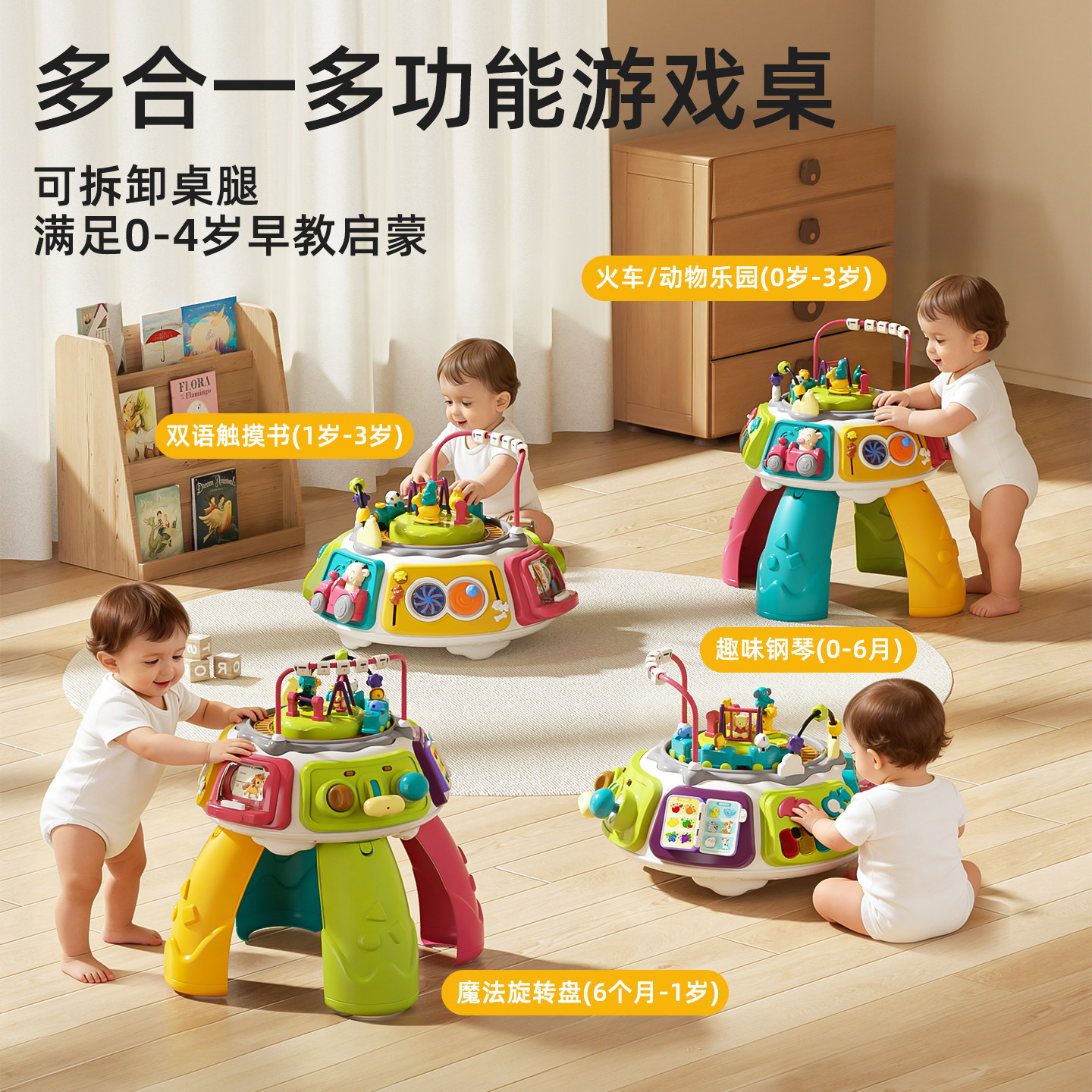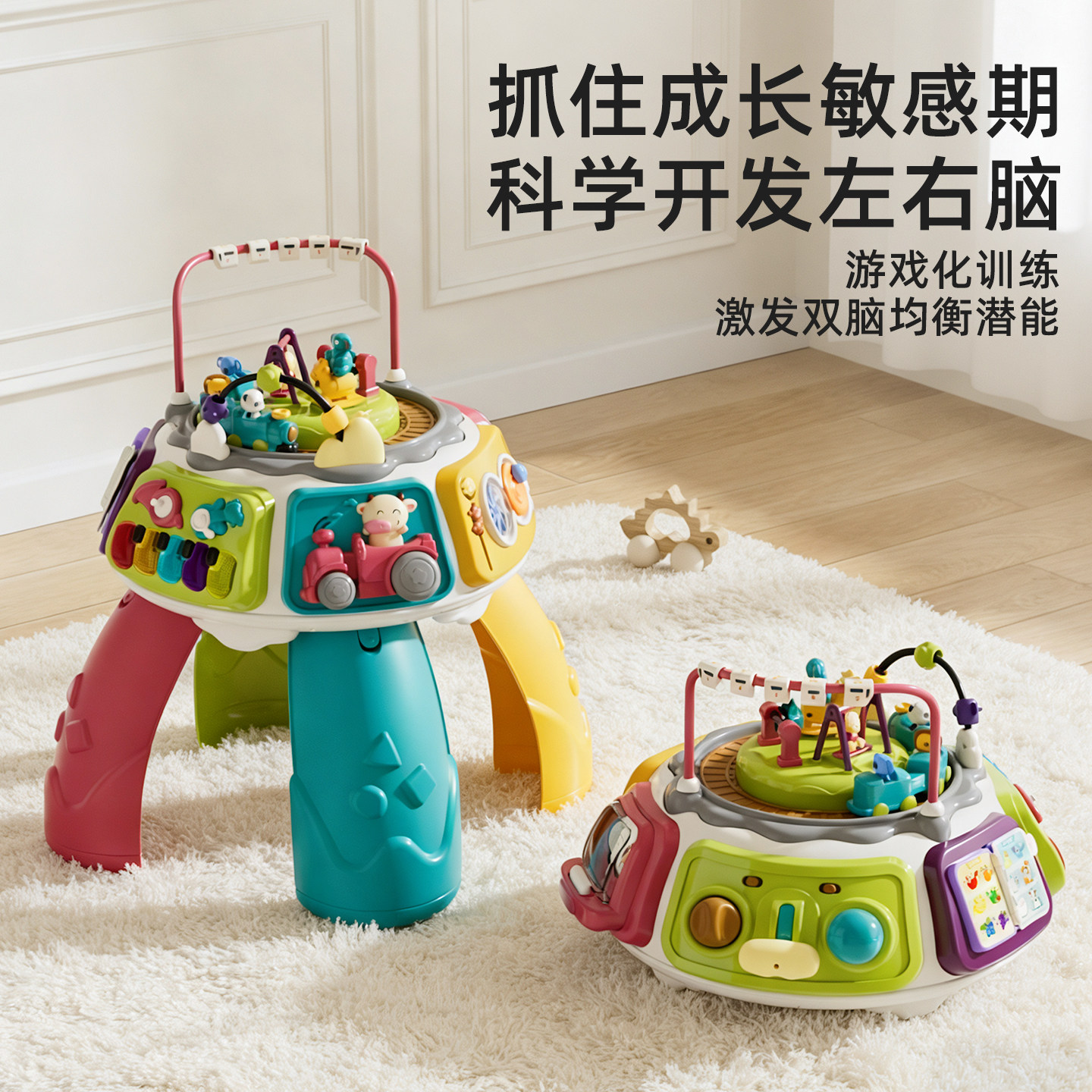 谷雨多功能游戏桌婴幼儿蒙氏早教音乐益智玩具桌双电池年货送礼盒