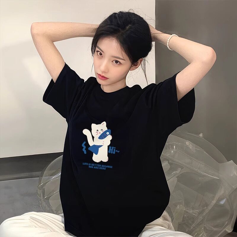 纯棉短袖t恤女夏2026新款宽松女士半袖藏蓝色超好看韩系chic上衣