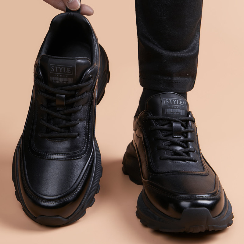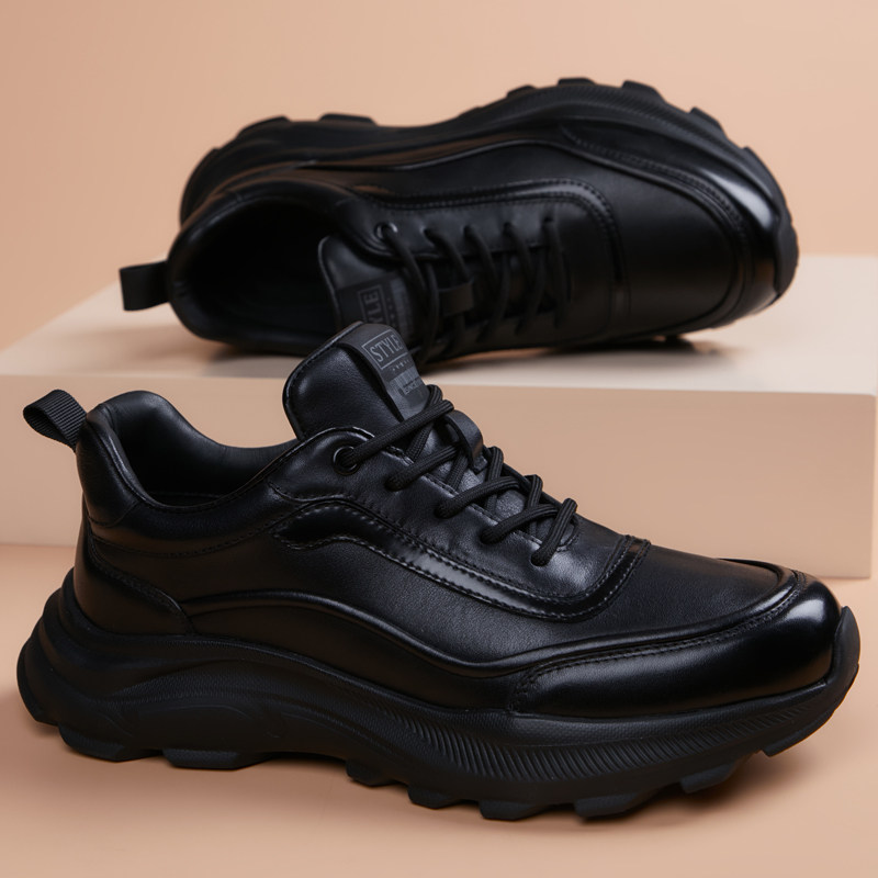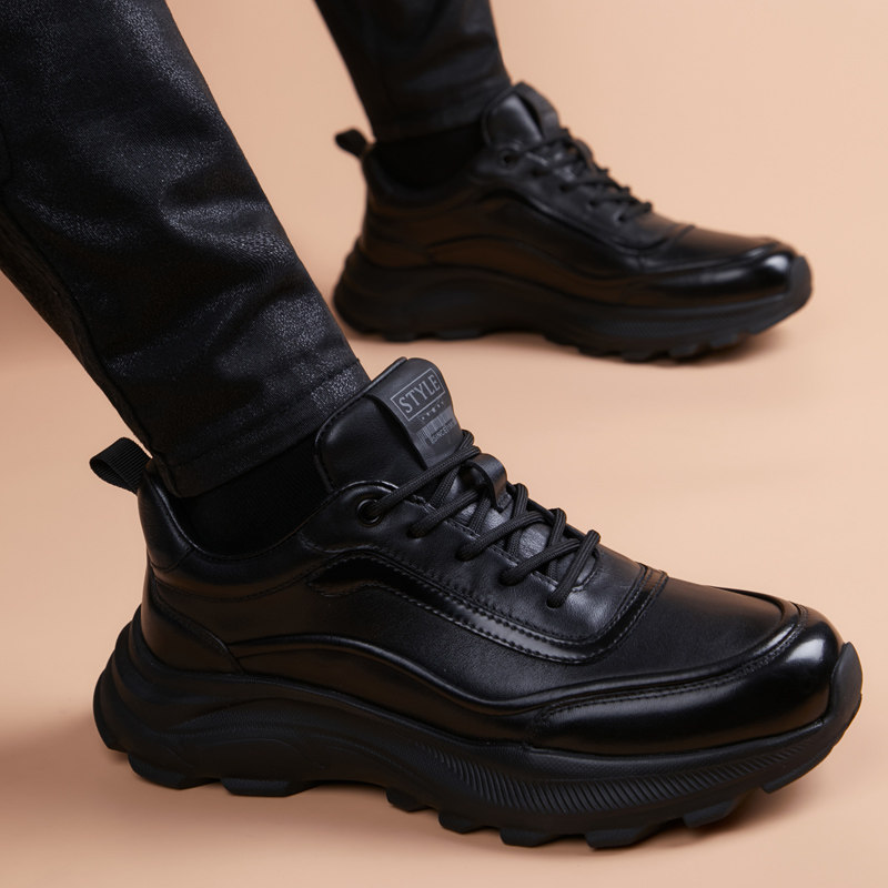 皮鞋男款2026新款商务英伦黑色增高厚底青年时尚鞋子运动休闲皮鞋